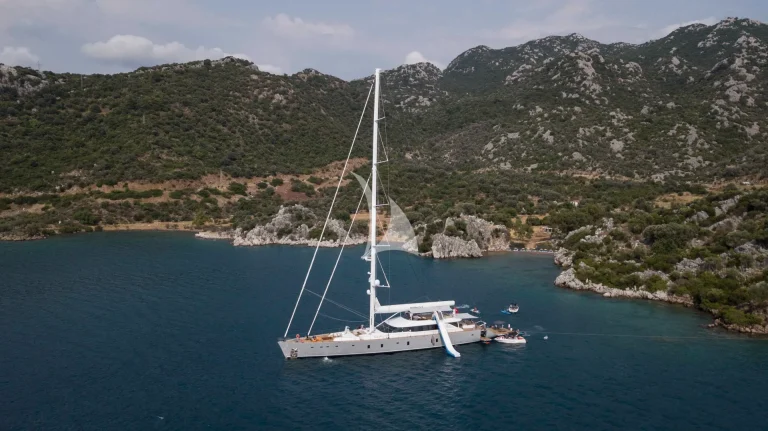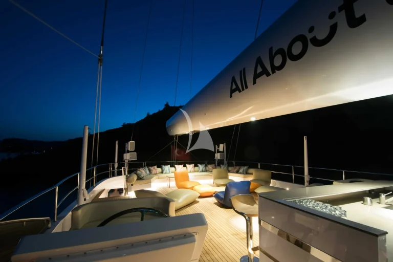 ALL ABOUT U2 is a modern sloop, launched in 2019 by Ada Yacht Work in Bodrum. She was designed in order to give the highest standards in terms of comfort, service, sailing. Her huge hydraulic opening swimming platform offers to client a real private beach and can be also used as “marina” for the many water toys available onboard.