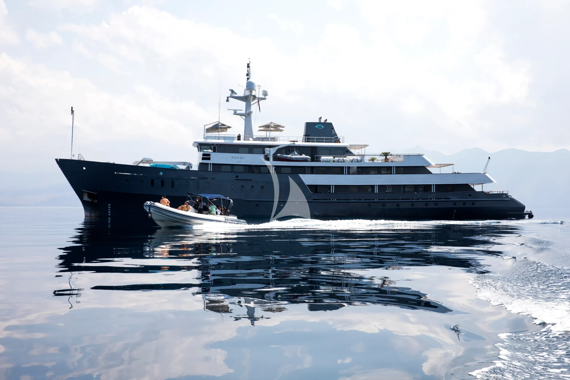 Originally launched as HMS Beagle, a British naval explorer named after Darwin’s famed vessel, Aqua Blu has been transformed into a modern expedition yacht built for cruising in tropical waters. Her open decks are designed for life outdoors, with every space making the most of the passing scenery.