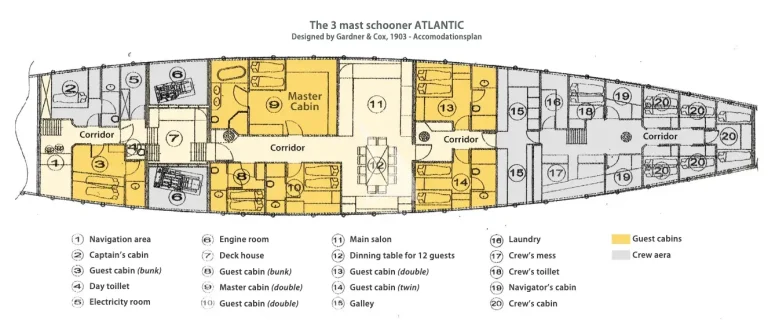 | Accommodation: | 12 guests in 6 staterooms | |