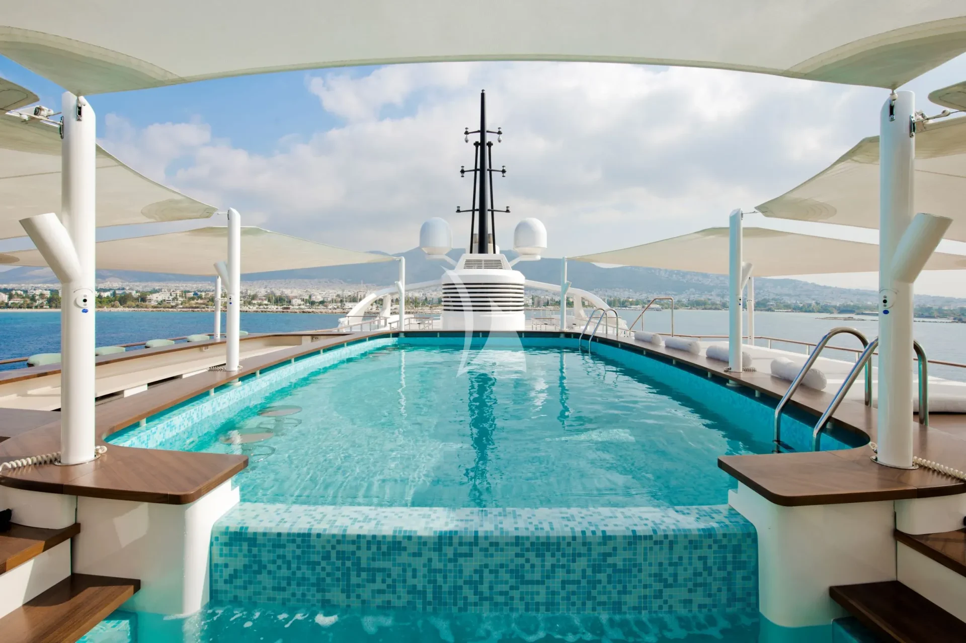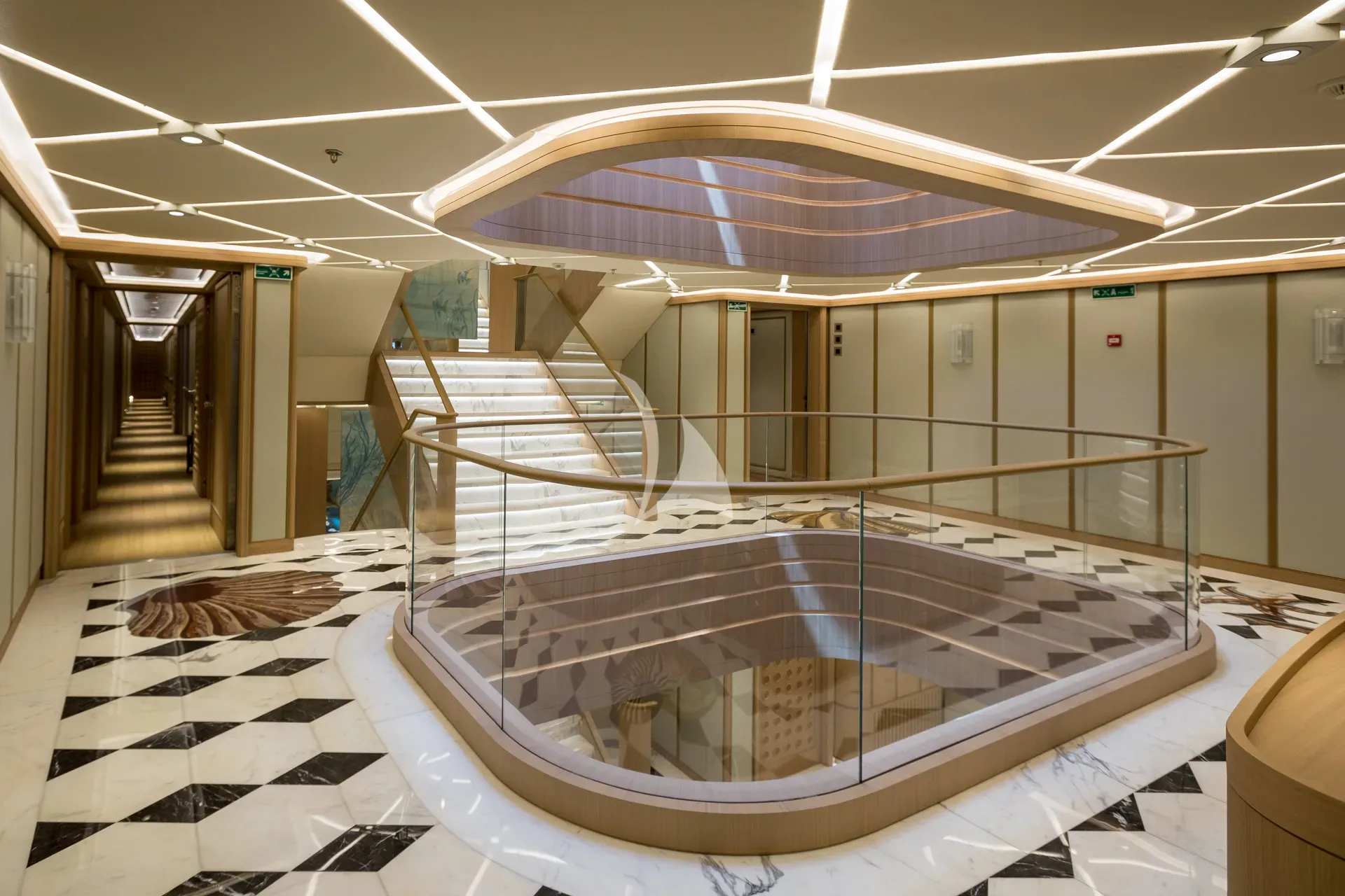 The guests accommodation includes 1 Master Suite (220m² private appartment), 8 VIP suites, 7 double cabins and 6 twin cabins.