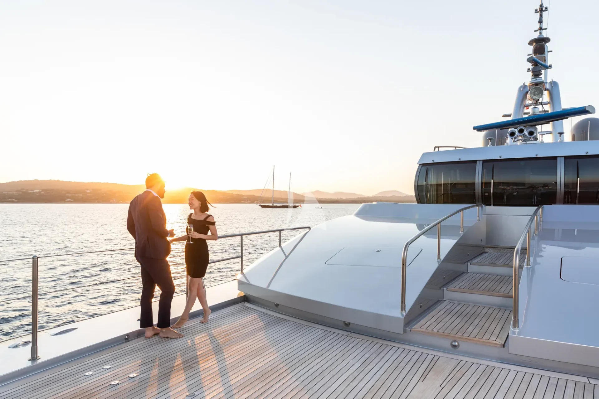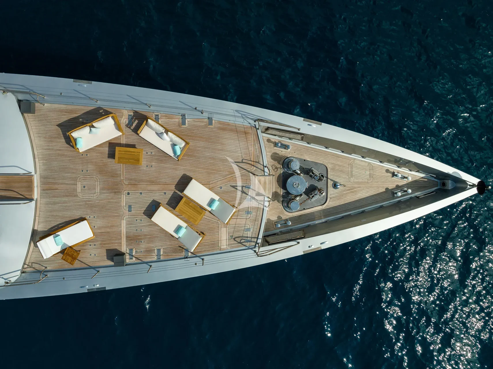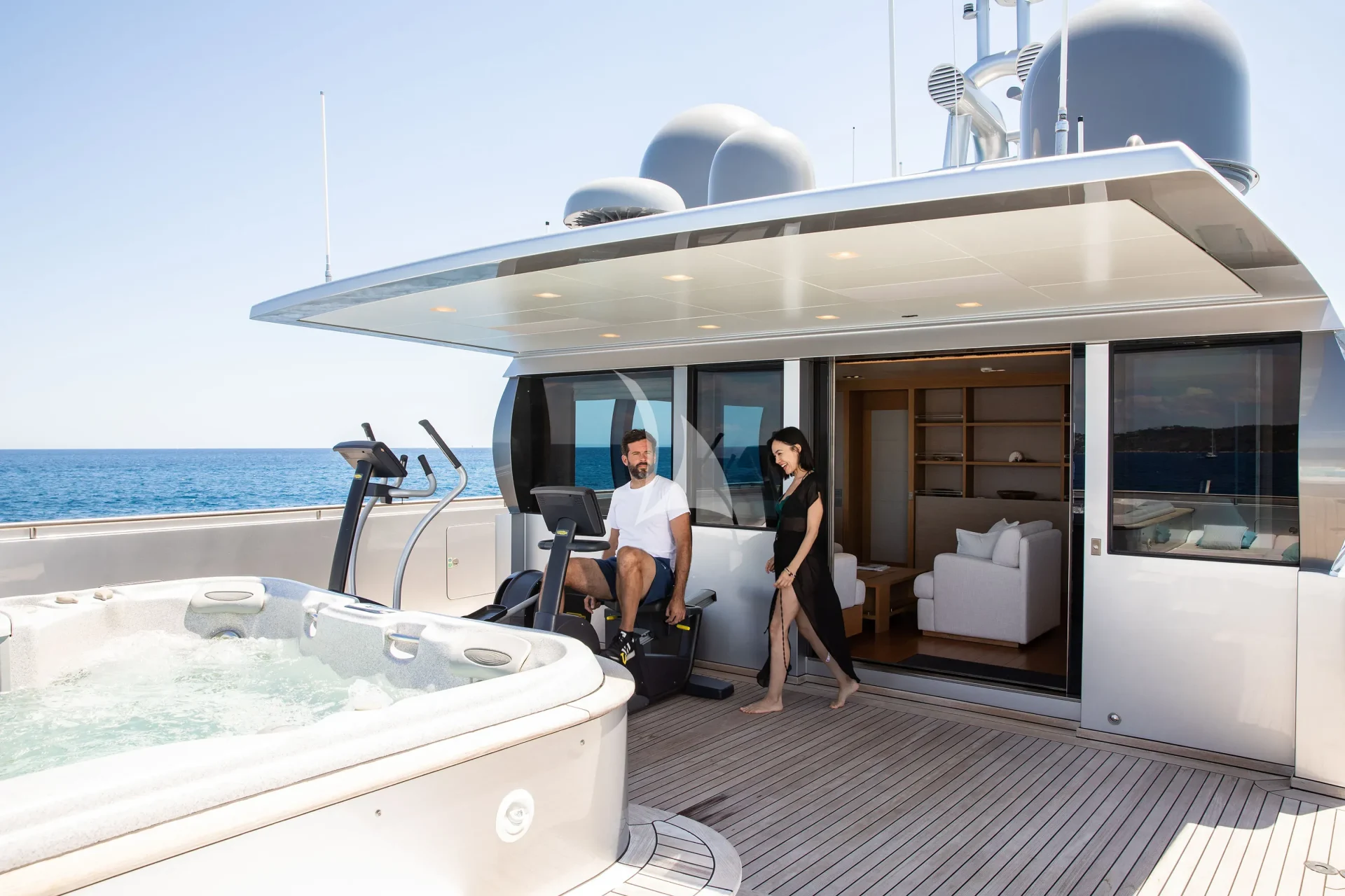The award-winning superyacht offers an abundance of versatile deck spaces. The 65m² shaded foredeck is equipped with sun loungers and a seating area that can be moved, ideal to host social events. For those looking to unwind, the spacious jacuzzi surrounded by a lounging area, located on the sun deck aft, is the perfect location to do so.