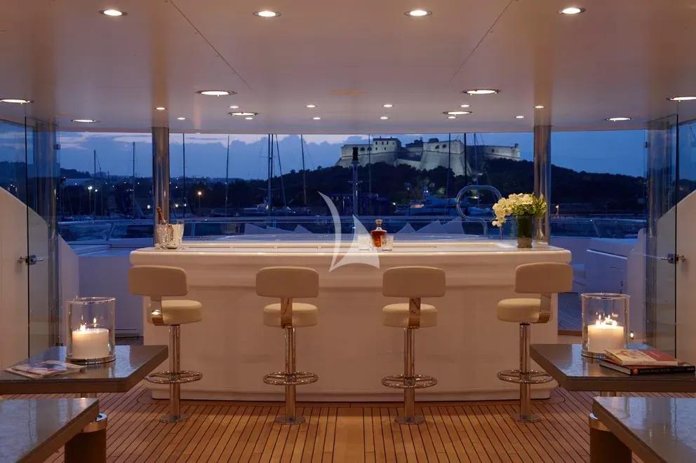 Hurricane Run brings to the charter fleet the opportunity of chartering one of the worlds finest Feadships-a name synonymous with quiet, smooth sailing and the highest quality. Her lines are clean and contemporary. She boasts a vast multi-use sundeck, full-width bridge deck lounge with full-width opening doors providing a terrace on the sea. The large aft deck leads to an even larger swimplatform that provides an excellent area for swimming and watersports. The Disdale interior is modern, minimalist, crisp and contemporary – a monochromatic palette that disguises sumptuous fabrics and comfort. From the vast main lounge movie area and dining area on the main deck through the spacious guest cabins and full-width master suite, and separate gym, she is a testament to contemporary style. She has all the requirements for comfortable modern living; flat screen TVs, Sky/Direct TV, Internet access, wi-fi, Lutron lighting and near silent a/c, all controlled from the sleek Crestron handheld remotes. At anchor stability is provided by smooth and effective Quantum zero-speed stabilizers. This is luxury yachting at its finest. The crew are trained and highly experienced and are able to pander to your every need. Why not join them on this magnificient yacht in an exotic destination of your choice and enjoy true relaxation.