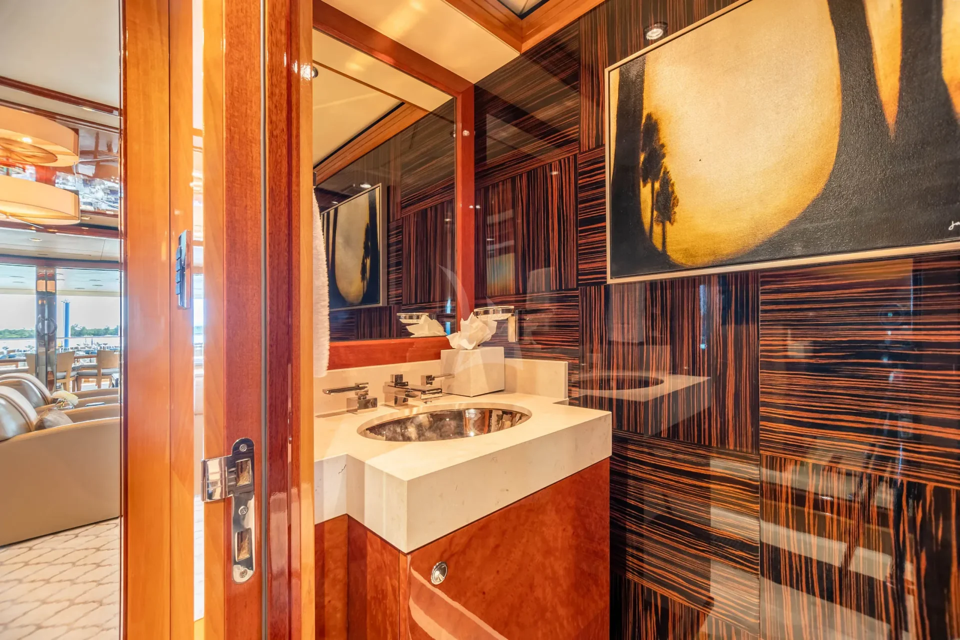 IMPROMPTU accommodates 12 guests in six stunning staterooms. The split-level master stateroom features a king-size bed, an elevated lounge with 180-degree views, and his-and-hers en-suite bathrooms featuring a steam shower, Jacuzzi tub, vanity and walk-in closet adjacent. A private study with a desk is located at the entrance. The bridge deck offers a VIP stateroom surrounded by large windows. On the lower deck, you’ll find three king staterooms and a twin cabin with a Pullman, each with desk areas and shower en-suites. The charter yacht’s versatile accommodation layout makes her primed family-friendly voyages.