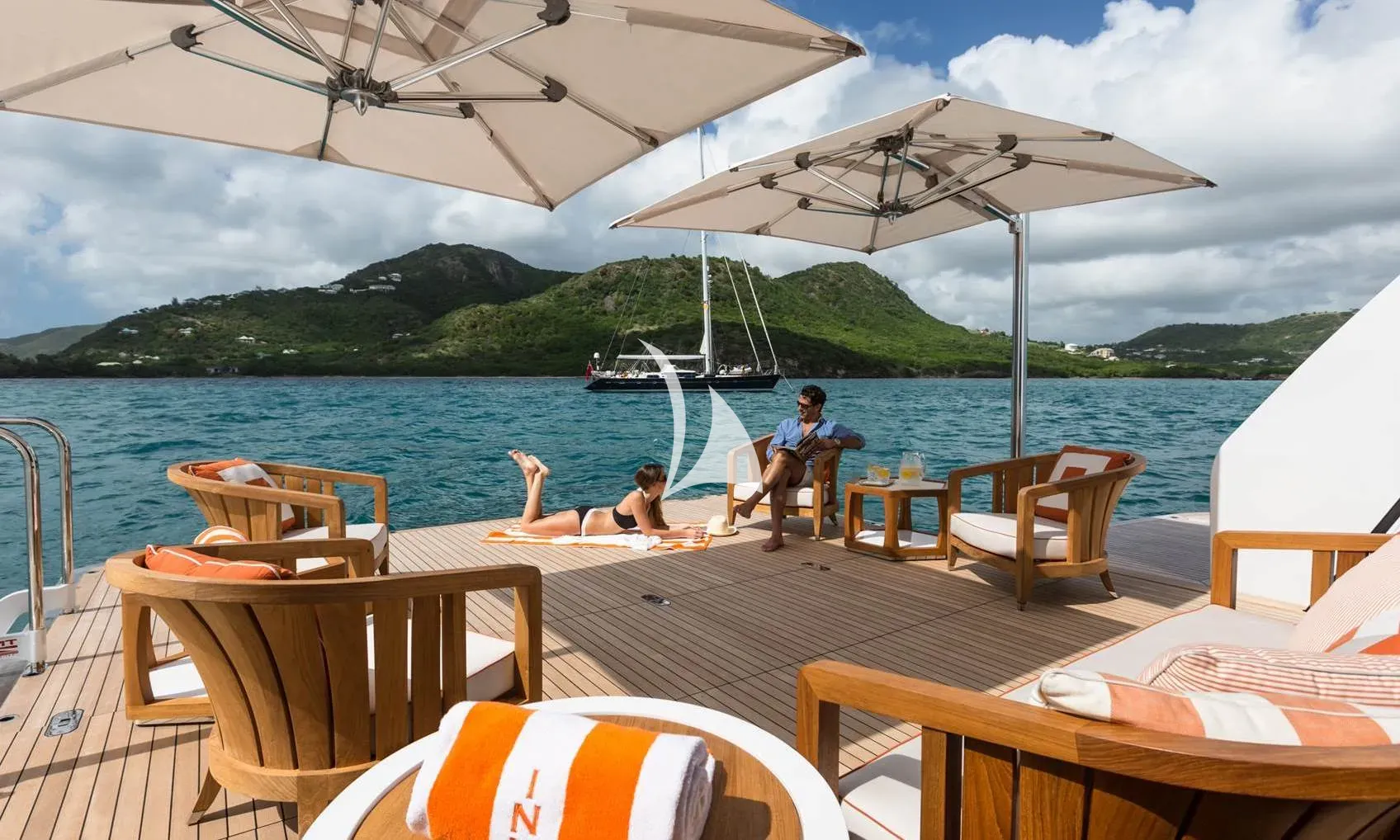 Expansive deck spaces host a variety of exotic dining options, from breakfast on the sun deck, to lunch by the dip pool and a five-star gourmet dinner for 22 guests at the impressive owner’s deck dining table. Charter guests can make the most of the sun deck with its barbecue, jacuzzi and extensive sun loungers offering pure, uninterrupted relaxation.