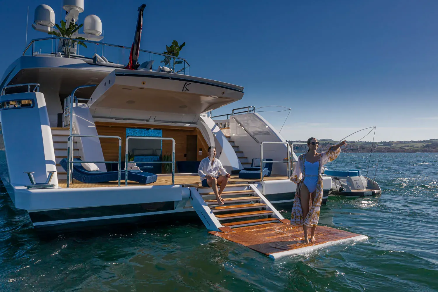 K2 combines a sporty, muscular profile with a chic, contemporary interior, accommodating up to 11 guests in 5 cabins: a full-beam Master suite, a twin with pullman, and 3 doubles. The upper deck offers an ideal alfresco dining experience with a Jacuzzi and lounge area on the bow, while a fold-down platform at the stern provides direct water access. On board, guests can enjoy a fully equipped gym and a range of water toys, enhanced by the versatility of a Castoldi JT21 tender, a 12.5 m chase boat, and rescue boat. Backed by an award-winning crew of 11, K2 boasts an impeccable charter record and a reputation for excellence.