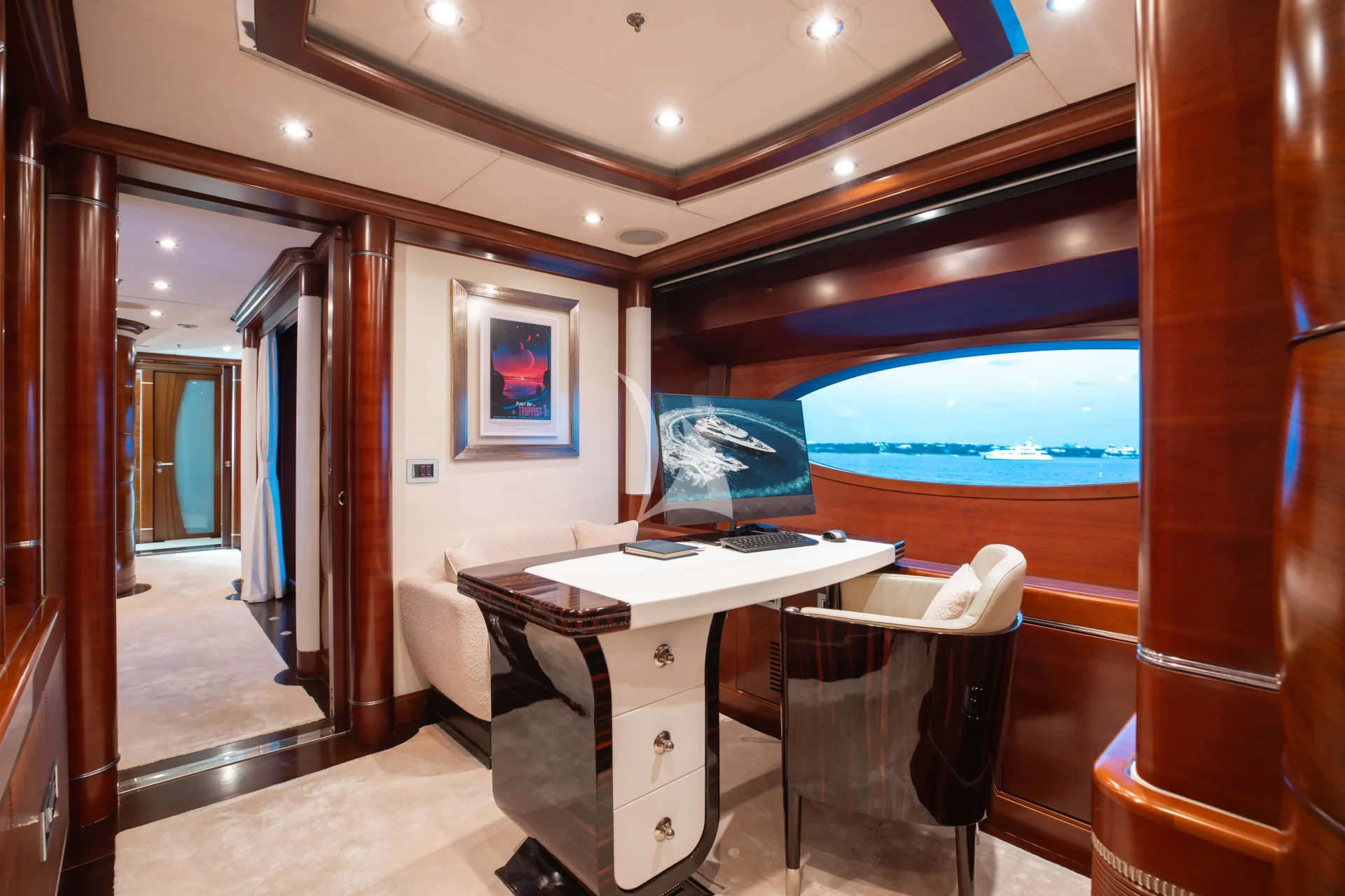 She also has a full-beam sky lounge, an indoor gym, a glass-paneled elevator, a beach club and one of the most impressive sundecks ever created for a yacht of this size.