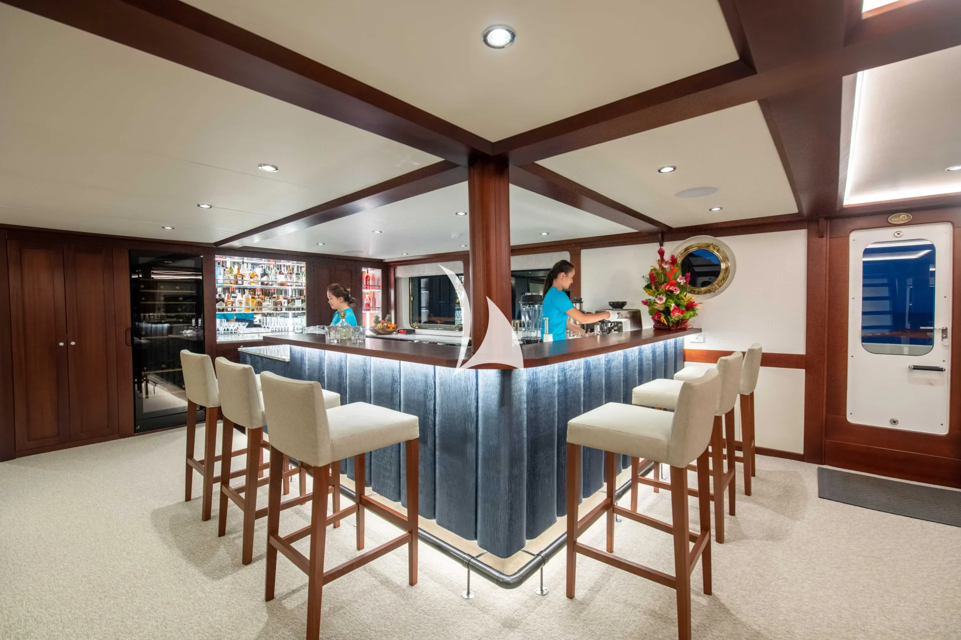 Then everyone gets together for breakfast in the Great Room on the forecastle deck where there will be exotic smoothies on offer at the sit up bar, indulgent pastries at the dining table or whatever you would prefer, courtesy of the talented chef, as you plan the day’s action with Captain Sam.