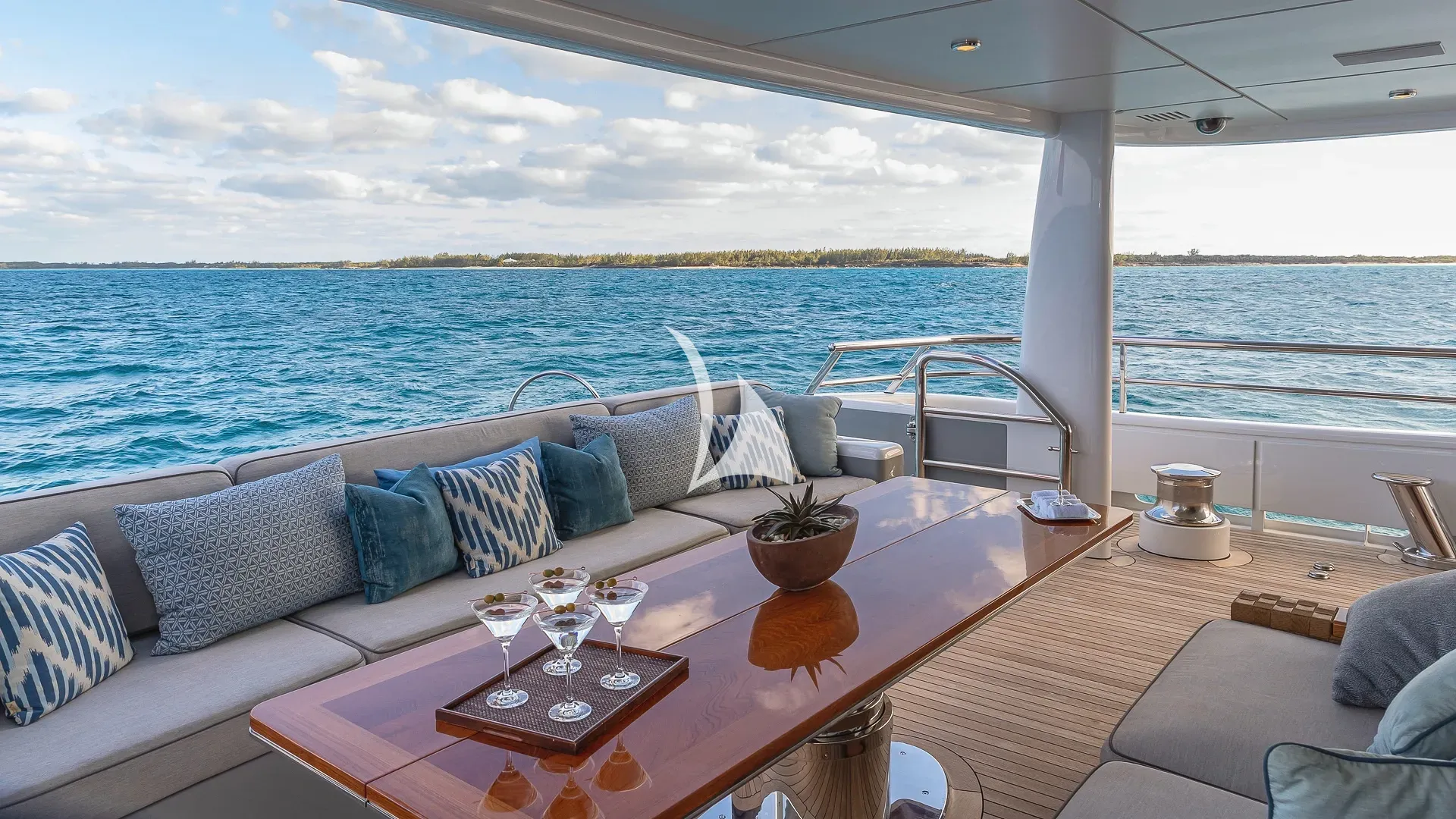 Her guests love the sun deck, where you can soak in the sun in the large jacuzzi, stretch out on the sun pads to work on your tan, work out on the exercise equipment, enjoy a sundowner at the fully equipped bar or just relax with a good book on the aft deck loungers. After dark it’s back to the sun deck to watch movies under the stars.
