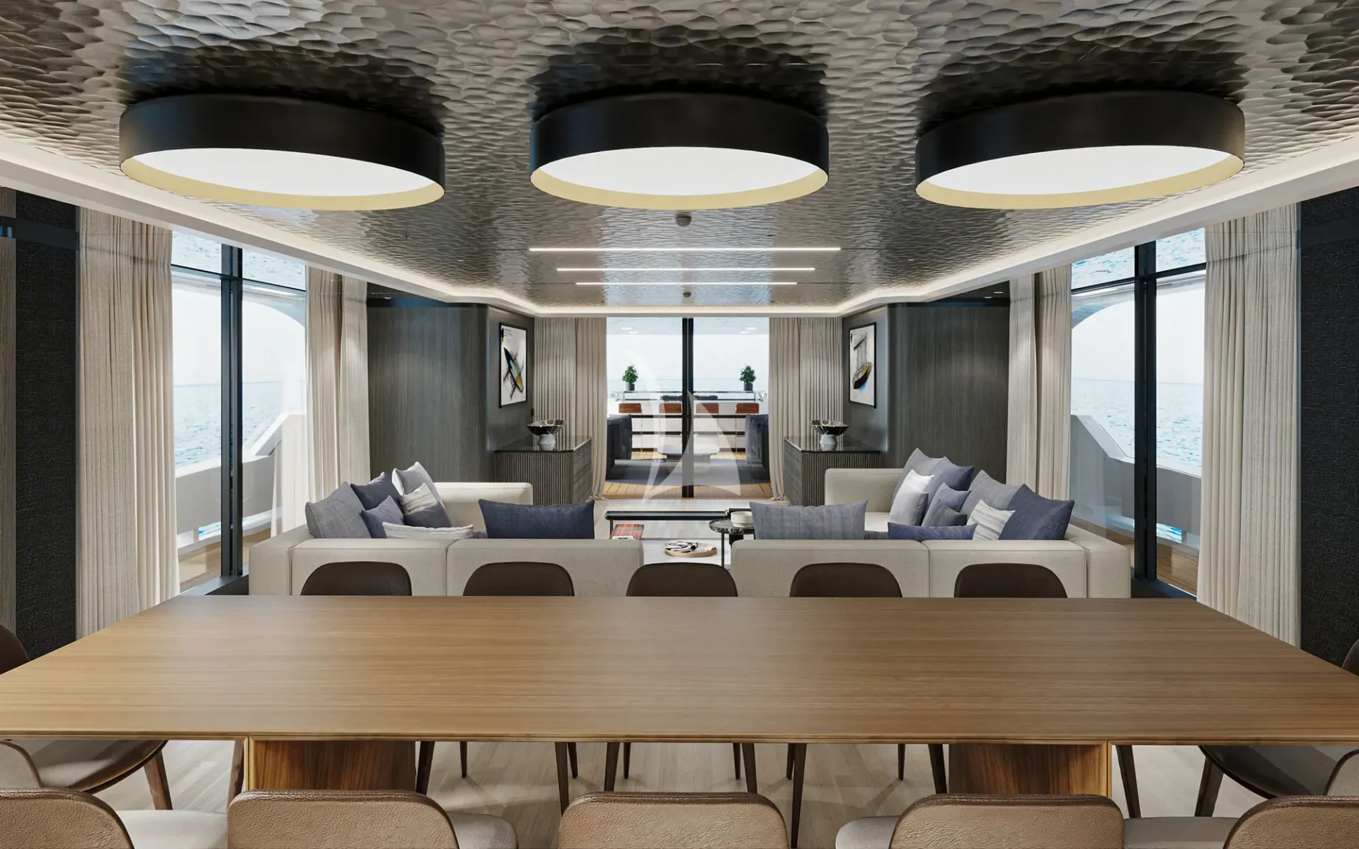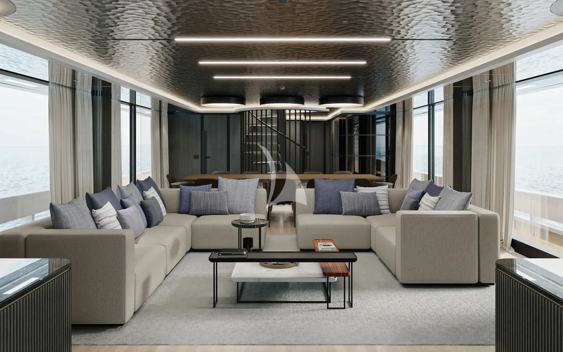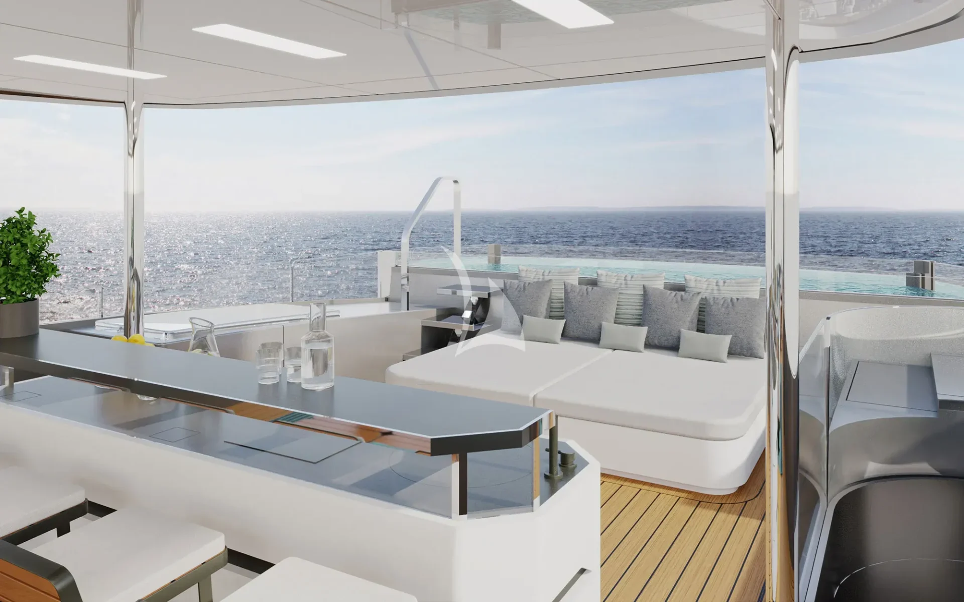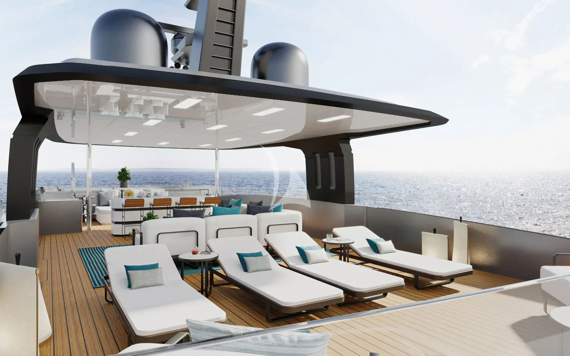 This 55-meter TANKOA T55 Sportiva combines aerodynamic design with pure relaxation. She is designed by Luca Dini and she will be delivered in April 2025. Her sleek hull is inspired by motorsports, featuring a beach club, a waterline spa and multiple outdoor lounges. LOEWE offers accommodation up to 12 guests in 6 luxury ensuite staterooms with the Owner’s “suite on the sea” featuring a private terrace with jacuzzi. The sundeck boasts an additional pool and sunbathing space.