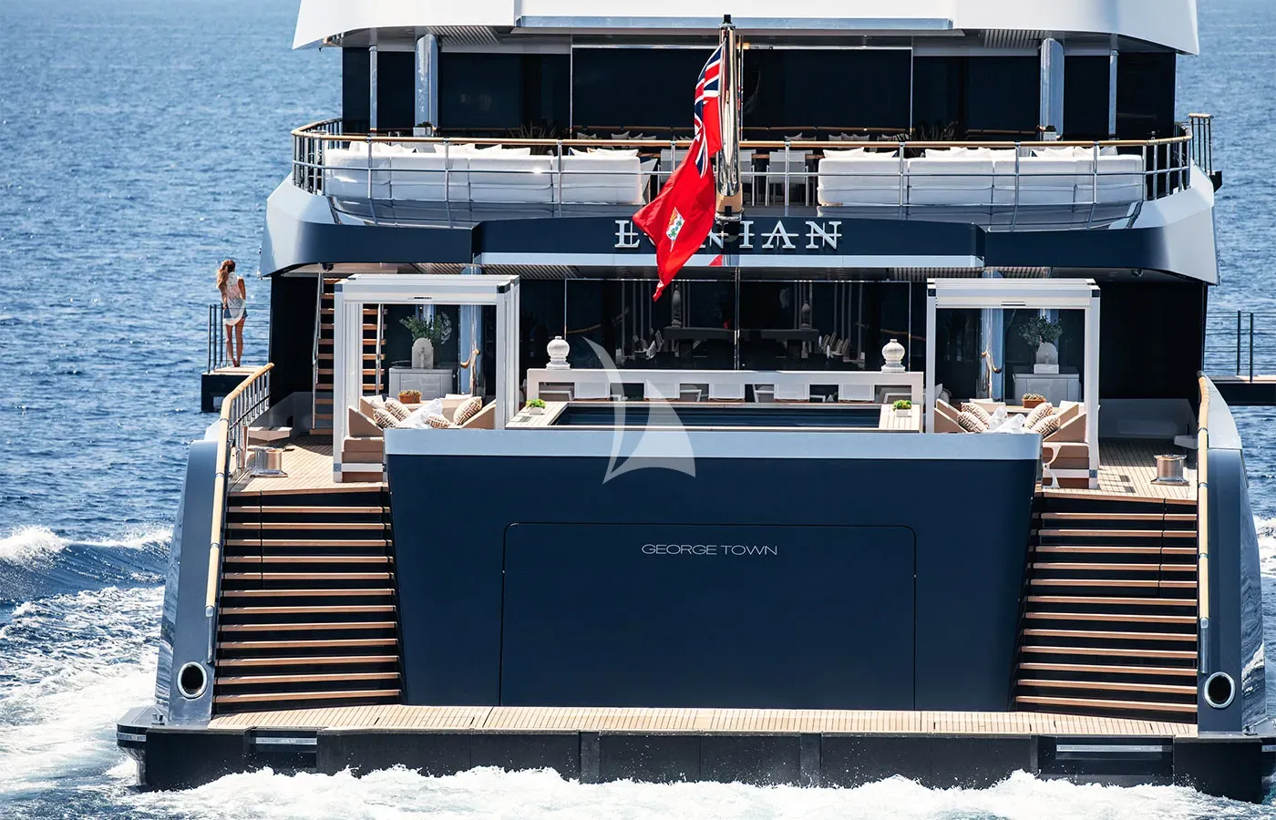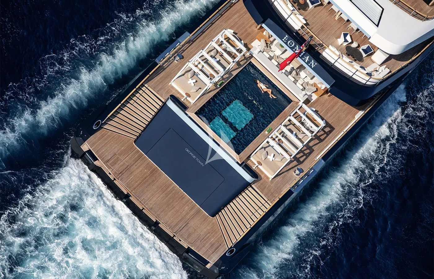 • Expansive Swim Platform: A spacious swim platform equipped with umbrellas, creating a comfortable shaded area by the water.