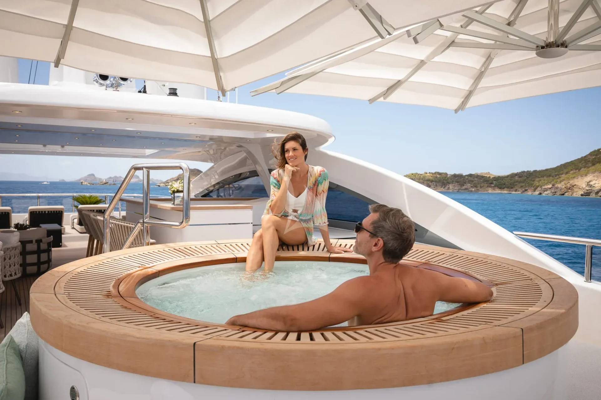 To sunbathe, exercise and relax, her spacious Sundeck offers in addition a fully equipped bar with lounge area and a jacuzzi with sunpads.