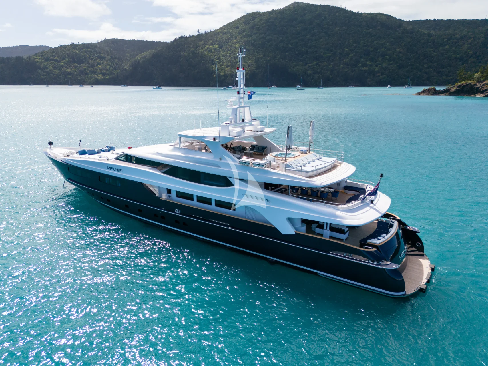 MISCHIEF has recently undergone an impressive $15,000,000 refit, including newly designed luxurious interiors, upgraded exterior decks, extended bars, and cutting-edge entertainment systems, along with a fresh coat of paint.