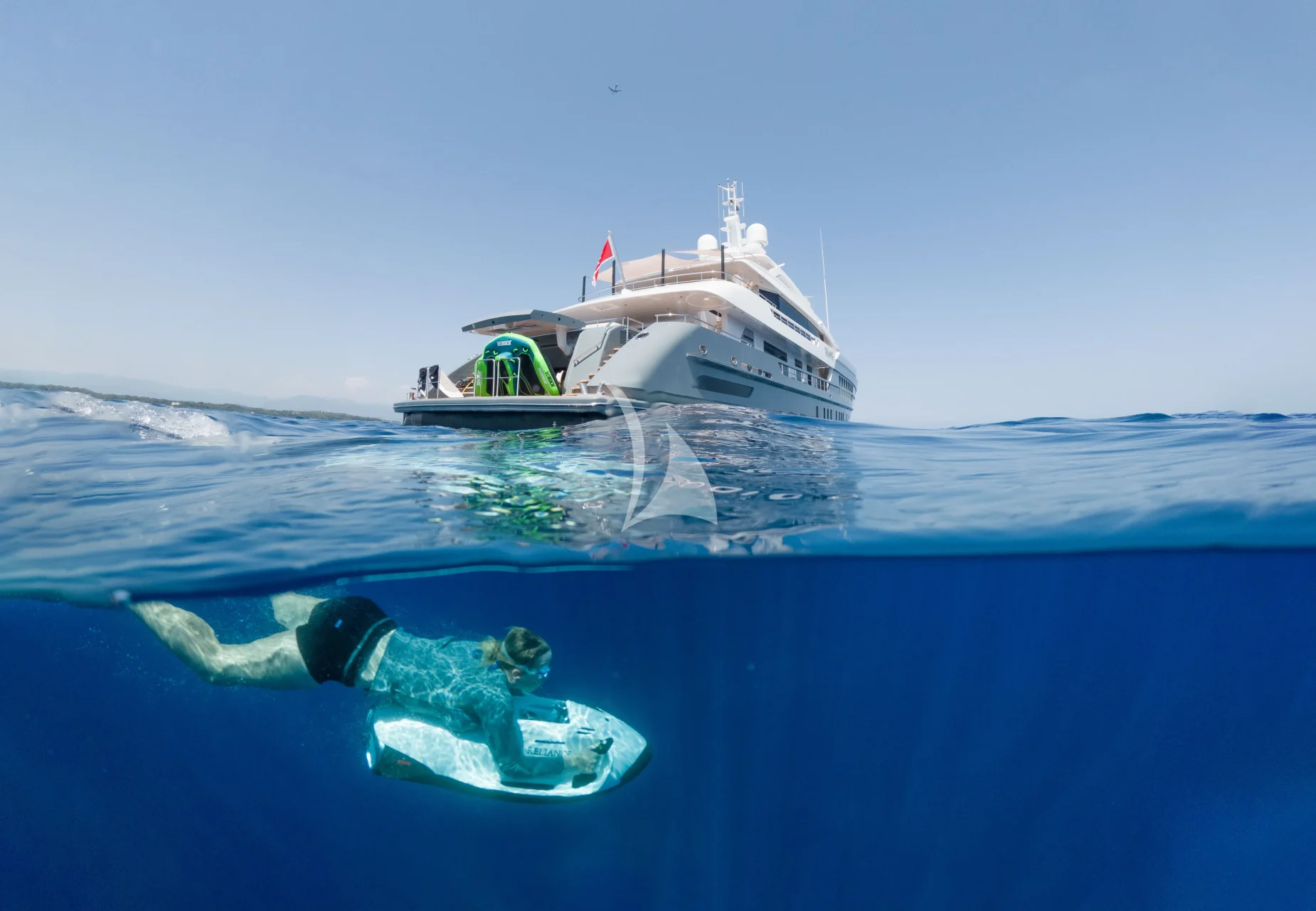 Stabilisers at anchor and underway ensure maximum comfort, whilst a well-stocked toybox delivers some fantastic high-speed equipment, including Seabobs, electric surfboards, jet skis and more, as well as not one, but two tenders, for excursions ashore and transportation. Ultrafast Starlink internet provides unbeatable connectivity throughout, backed up by 4/5G and VSAT antennas.