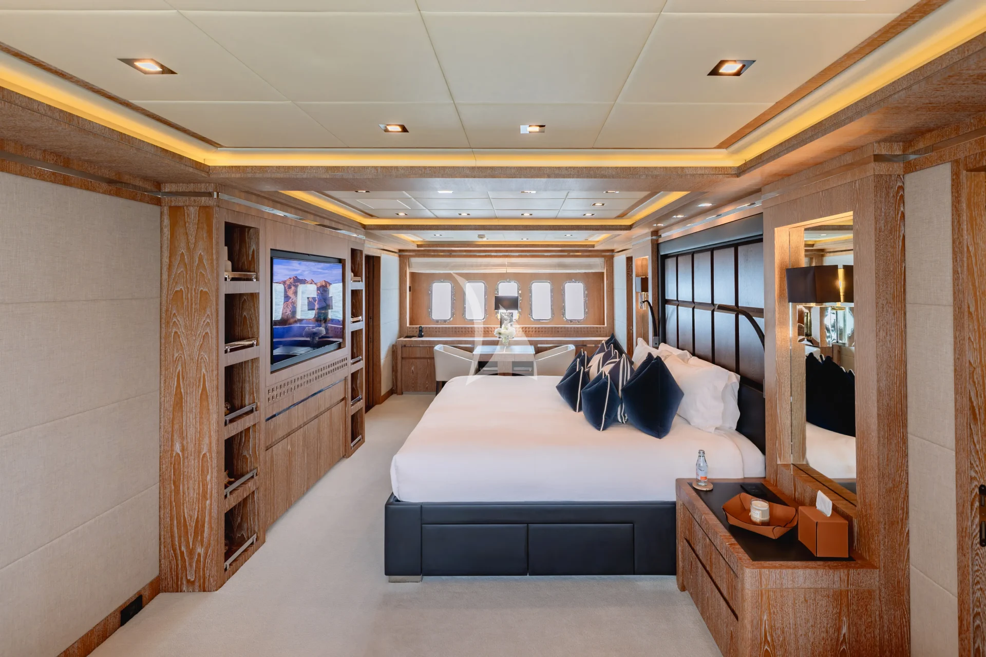 ROYALE X has a bright, modern interior by Valentina Balducci with beautiful bleached-teak wood floors and limed-oak panelling throughout creating a light, airy vibe.