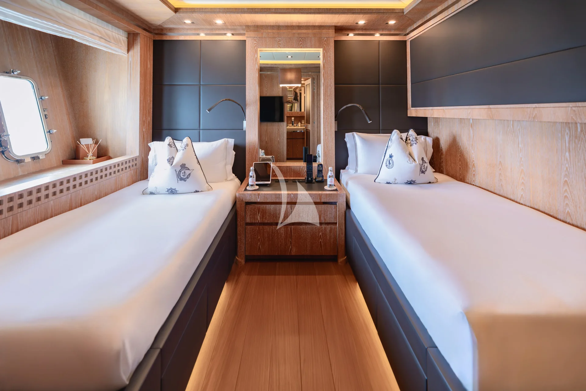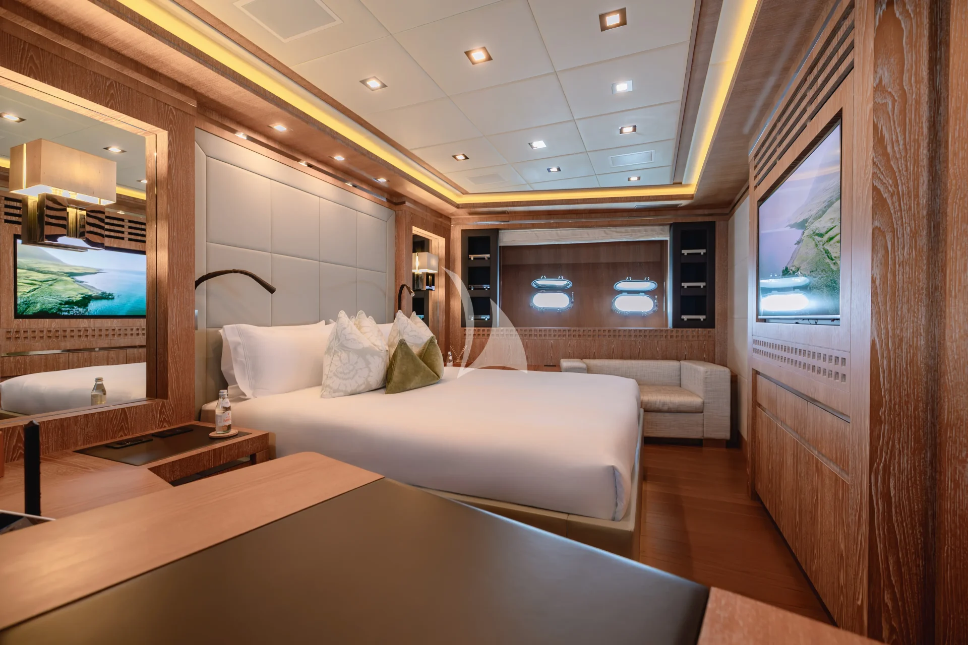 With nine Seakeeper gyrostabilisers she remains stable both at anchor and underway so you can let your hair blow in the wind, without worrying about a bumpy ride. Her modest draft of 1.6m (5.9ft) allows her to explore the charming bays and ports that are off-limits to many large yachts.