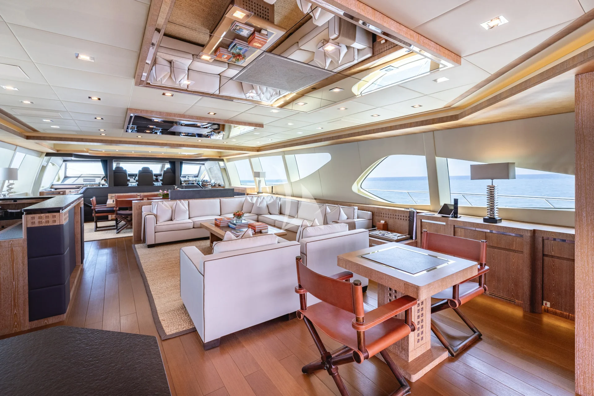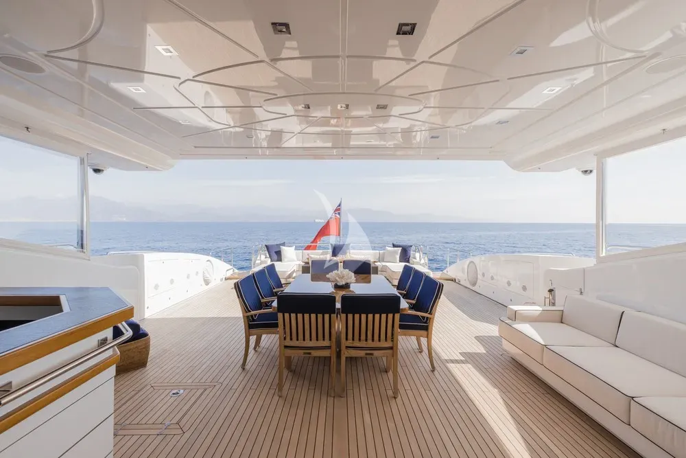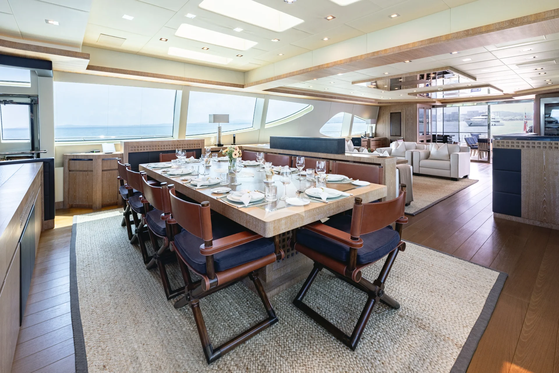 Want to relax in style? Head to the main deck aft where built-in seating and a large table await, perfect for al fresco meals.