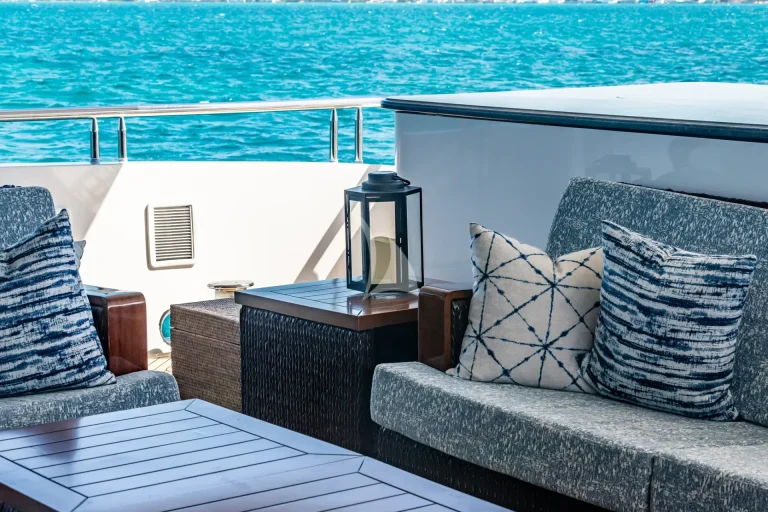 Guests can make their way up to TCB’S vast sundeck for fun in the sun. On this level, an alfresco gym provides guests the ability to keep their workout routine while on board with an arrangement of equipment at their disposal. A large six-person Jacuzzi invites guests to soak in the shade. The charter yacht’s deck space is large enough for guests to move around comfortably. Large built-in double-facing sunpads and sun loungers ensure guests will be in complete comfort while sunbathing, and optional shading is available when desired. TCB’s full complement of water toys will do the trick for those seeking a little exhilaration. TCB’s plethora of water toys are readily available for each guest’s enjoyment. Easy access to water toys is available from TCB’s extended swim platform and docking system making the switch from ski’s to wave runners a breeze. No matter the group, guests of all ages will find that TCB and her experienced, charter savvy crew exceed expectations.