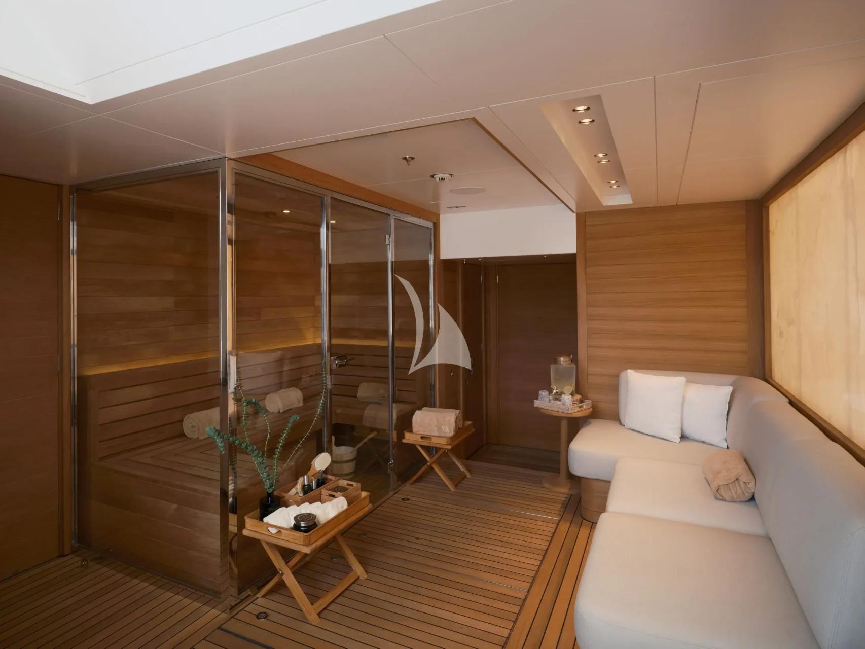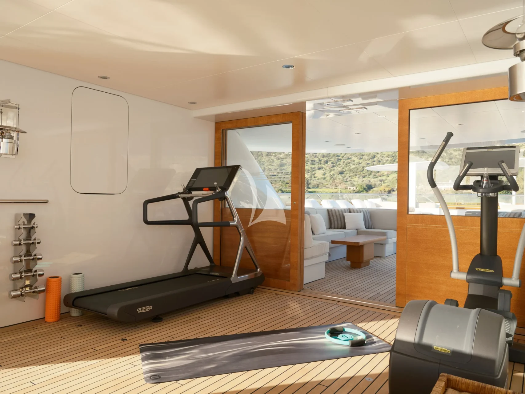 VASSA’s beautiful interior by Redman Whiteley Dixon is neutral and contemporary, designed to create a calming atmosphere and wide appeal. Key onboard highlights include a fitness studio equipped with the latest exercise equipment, state-of-the-art entertainment systems, a massage room offering a private space for rejuvenation and a tender garage housing a wide selection of toys for water sports and activities.