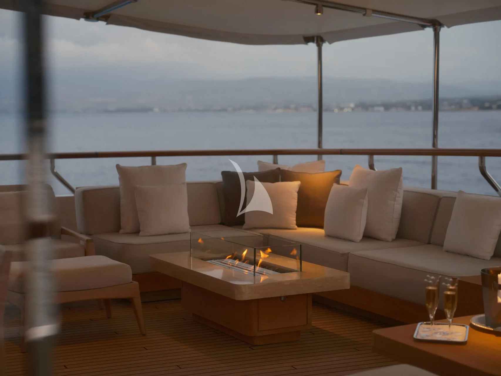 On the sun deck, guests can choose from three distinct areas to cater to every preference. Forward is a spacious sunbathing area perfect for sun worshippers. For those who prefer shade, there is a comfortable shaded lounging area, plus an elegant, covered seating area providing the ideal setting to enjoy canapés and sundowners in style.