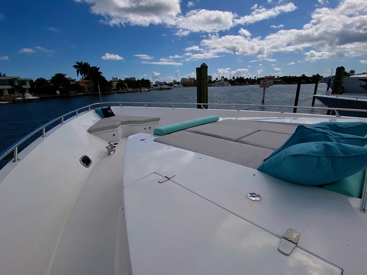 Hargrave Custom Yachts exceeded industry standards when designed and built M/Y Brandi Wine. She has excellent stability abilities and long-Range cruising. Some of her great features are: Zero Speed stabilizers, extra storage, high ceilings, high-visibility bridge, extra soundproofing, Convertible Hard Top, Extra Large Jacuzzi.