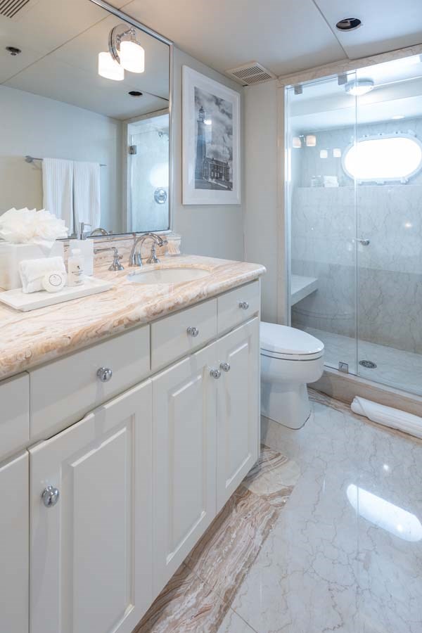 Chanson is a spacious 120′ Tri-Deck Motor Yacht, built to ABS standards by Christensen Shipyard in 1995. Her wide beam provides generous living areas on the main and upper decks, featuring walk-around side decks. The yacht offers a four-stateroom layout, including an on-deck VIP suite and a full-beam master stateroom on the lower level. The expansive salon and dining area lead to a semi-enclosed aft deck with seating overlooking the cockpit. The upper deck features a Captain’s suite behind the pilothouse and a skylounge with a full wet bar near the boat deck, while the top deck offers additional seating and a large hot tub.