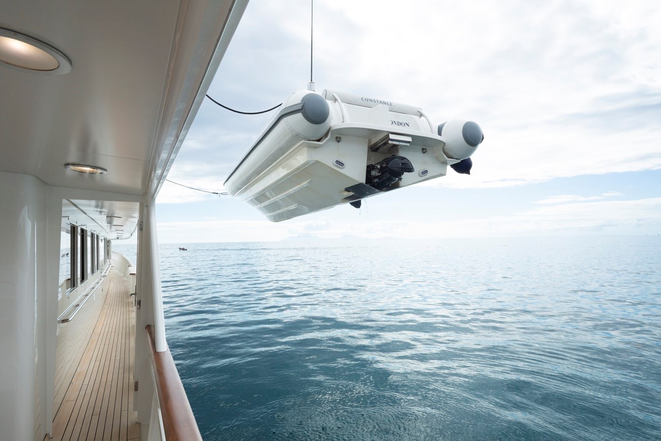 Powered by twin Caterpillar Acert C32 diesel engines (900 hp each), CONSTANCE cruises comfortably at 12 knots, with a top speed of 14 knots and a maximum range of 3,800 nautical miles at 10 knots. Her onboard stabilisation system ensures smooth cruising conditions for all guests.