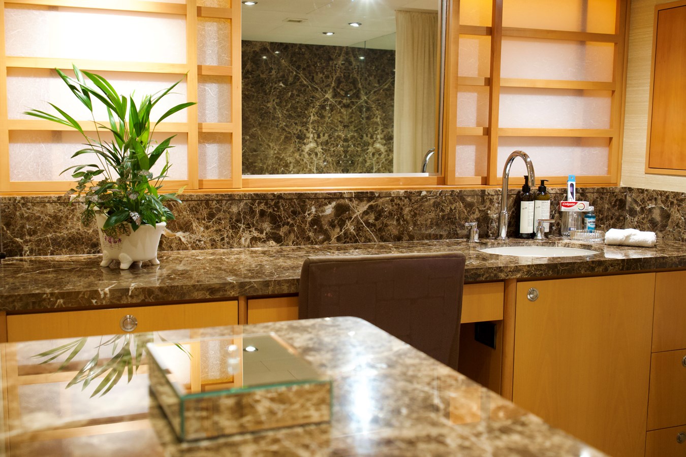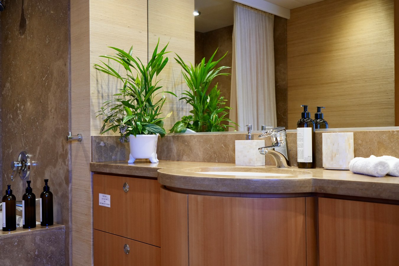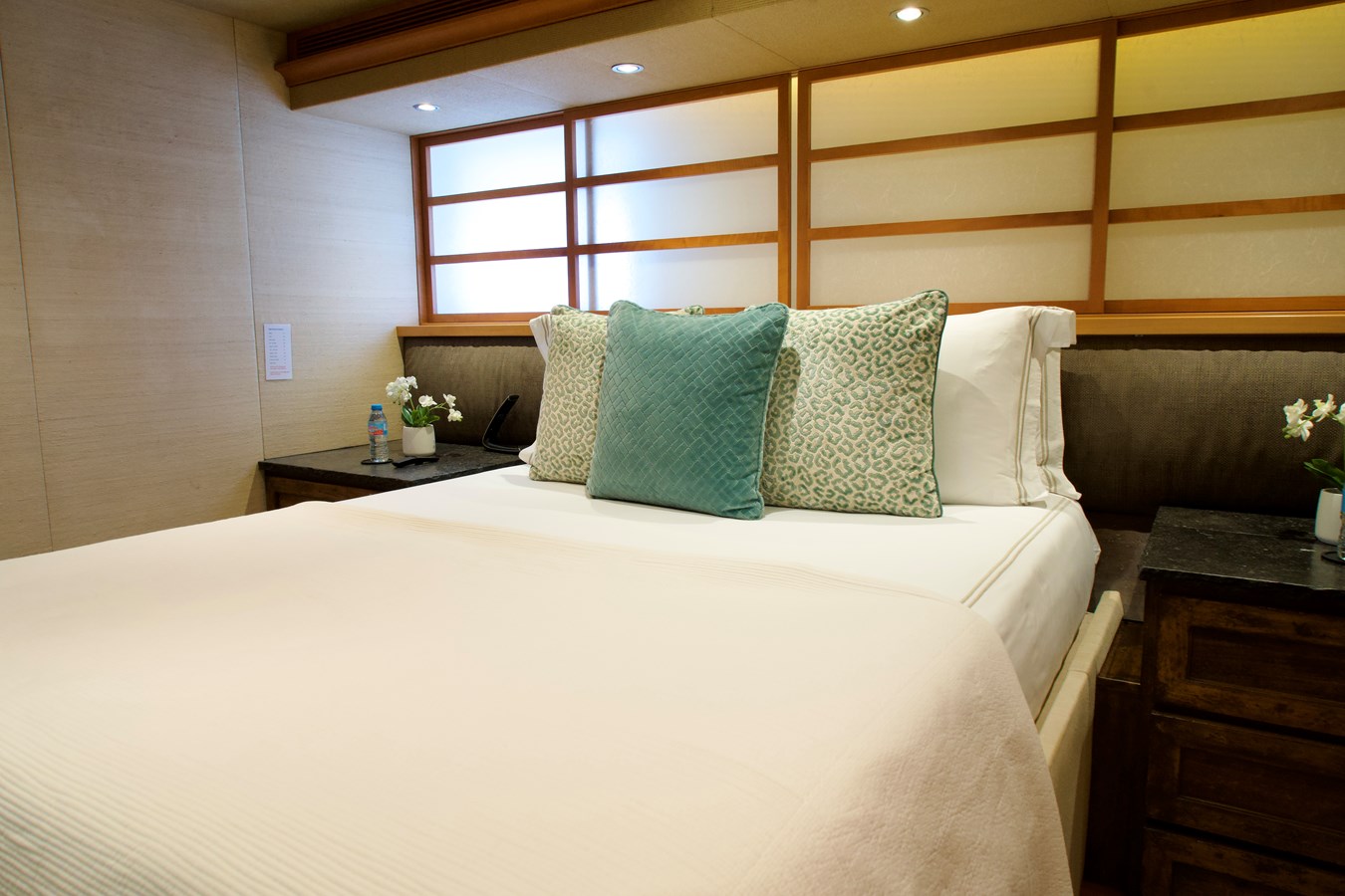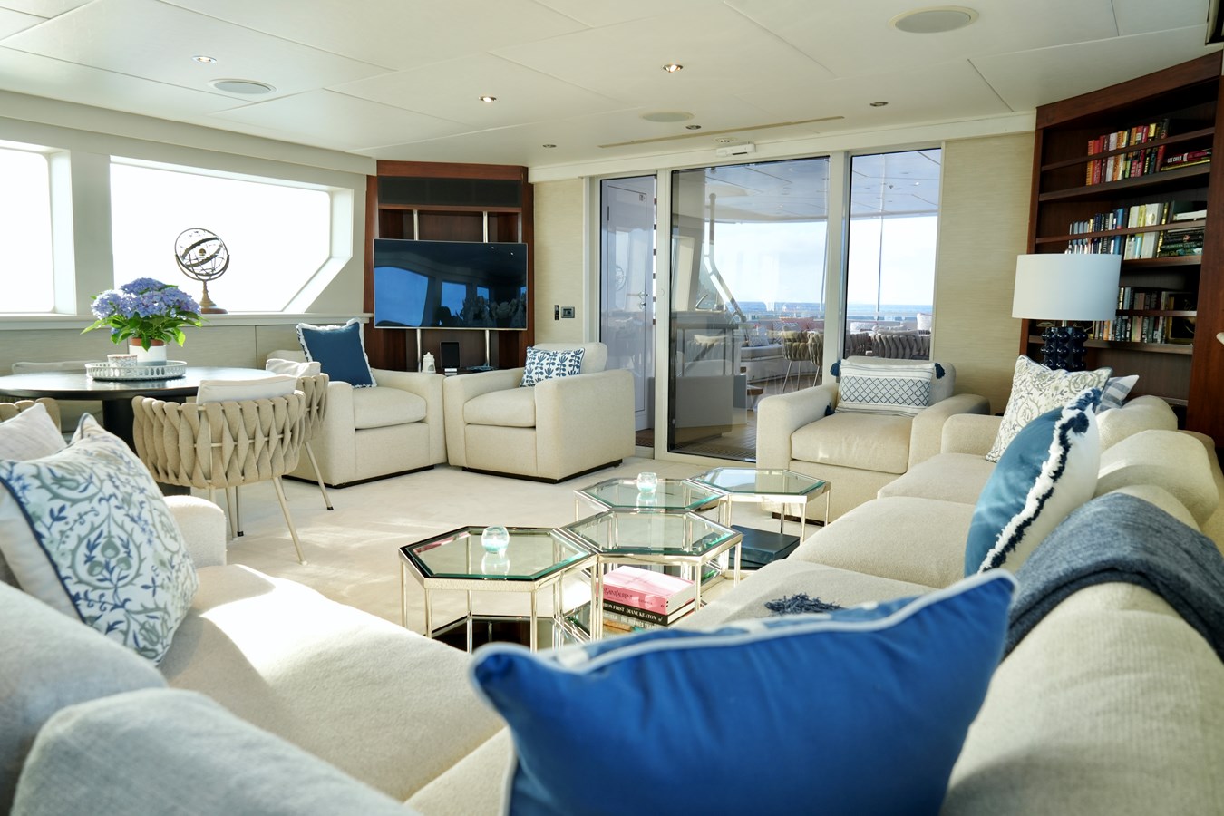 Powered by twin MTU engines, she reaches a top speed of 22 knots and cruises comfortably at anywhere between 11 and 17 knots, offering a perfect balance of power and efficiency. Her generous beam allows for expansive indoor and outdoor entertaining spaces, including a sun deck, alfresco dining areas, and large swim platform.