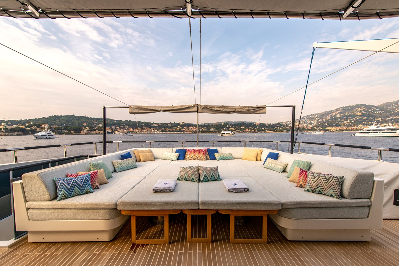 Stepping on board Gems II is an experience in itself; guests are immediately enveloped in a modern and inviting atmosphere, where they’ll feel instantly at ease, with subtle touches of luxury enhancing the overall ambiance. Her masculine lines and grey hull turn heads in ports, cleverly concealing a beam of 8.6 meters, which creates a voluminous hull with a generous amount of space below deck.