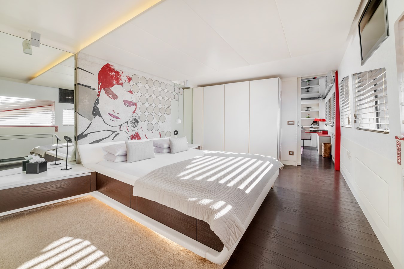 A true icon of individuality on the water, The JoyMe is a 49.91m (163’) tri-deck motor yacht that blends avant-garde design with uncompromising comfort. Originally launched in 2011 by Philip Zepter Yachts and given a meticulous refit in 2024, she remains one of the most instantly recognisable yachts on the seas. With her bold red and silver hull and sculptural lines, she cuts a striking silhouette that commands attention in any port. Step inside and the story becomes even more extraordinary. Designed by visionary Philip Zepter, The JoyMe’s interiors are a celebration of pop-art glamour and modern creativity. Every space has its own personality: think playful motifs, vibrant colours, and a gallery-like feel where art meets function. The six guest cabins are all uniquely styled, offering a fresh experience for every visitor, while the master suite and VIP suite indulge in private terraces that invite sunrise coffees and sunset cocktails against panoramic sea views. More than just a yacht, The JoyMe is an expression of personality and joy, designed for those who dare to be different. She is not simply a vessel, but a floating work of art—an unforgettable stage for life’s most memorable moments at sea.