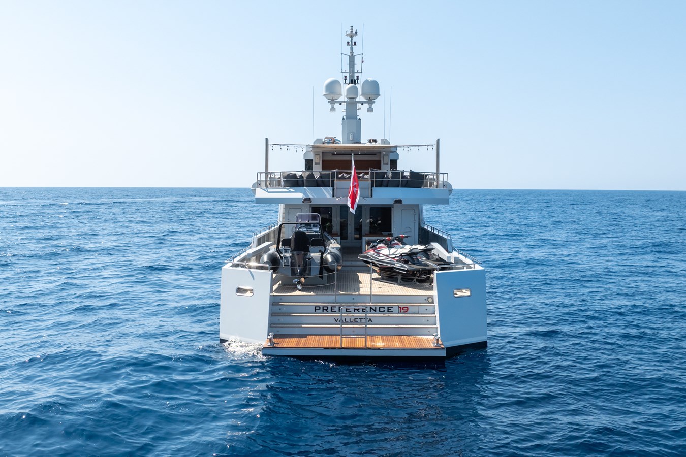 Delivered in 2011, PREFERENCE 19 has an award-winning contemporary design with strong, angular exterior lines and a fresh, loft style interior. The spacious aft deck takes this explorer-style yacht to the next level; the perfect spot to launch tenders and toys, exercise or bask in the sun.