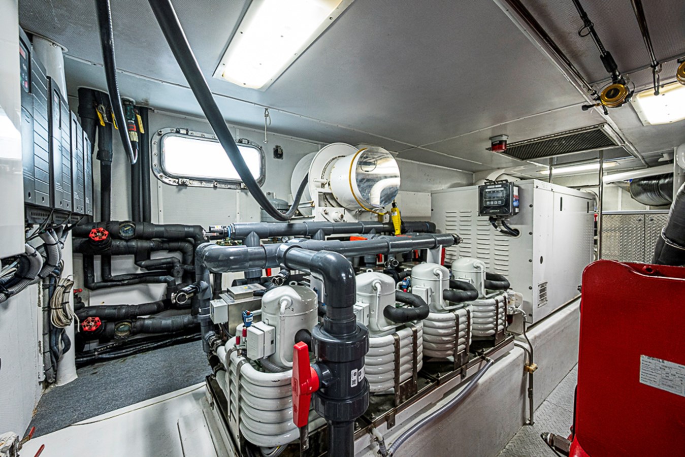 Professionally maintained since launch, PROBABILITY has benefited from continuous mechanical care, consistent system upgrades, meticulous engineering oversight, and the type of long-term stewardship that is rare in today’s brokerage market. Her engine room presents clean, organized, and professionally serviced. Her interior spaces show pride of ownership, and her systems throughout reflect a yacht operated to high standards.