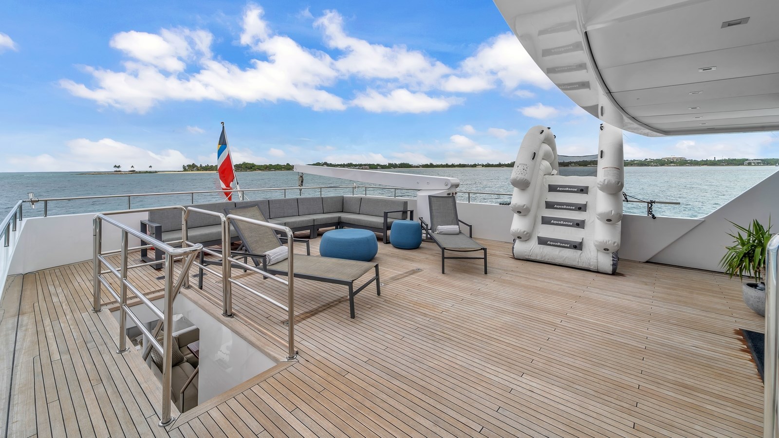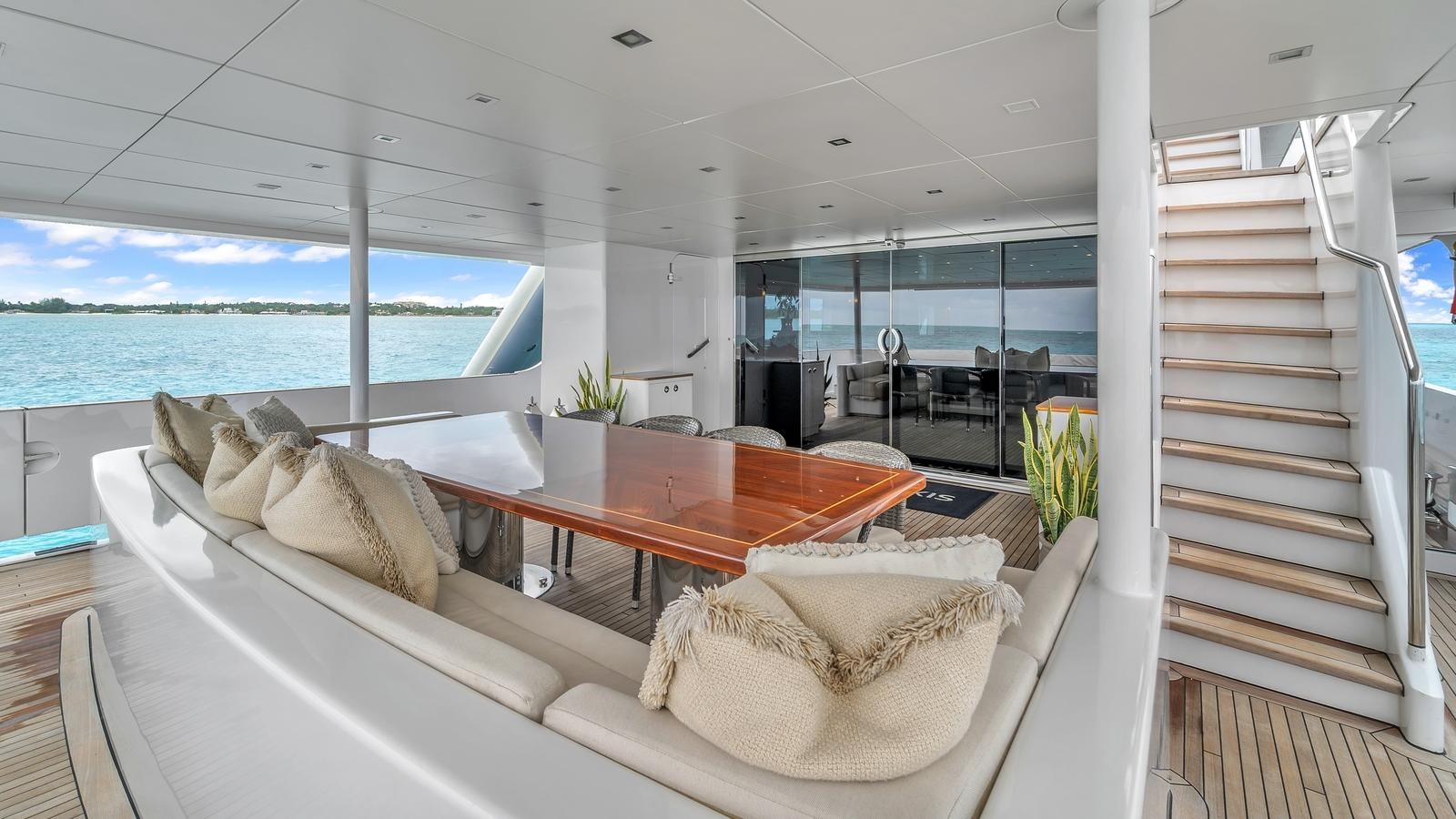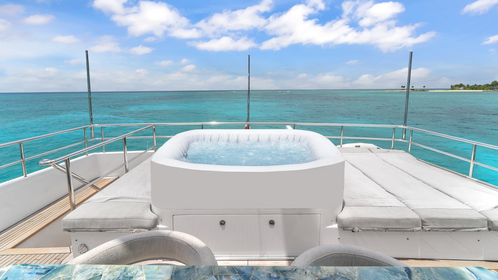 A fantastic Bahamas cruiser with low fuel consumption, she combines contemporary interior design, excellent exterior entertaining spaces, and multiple recent upgrades. Her spacious sundeck with jacuzzi and bar is perfect for relaxing or hosting, while her five-cabin layout accommodates up to 12 guests in comfort.