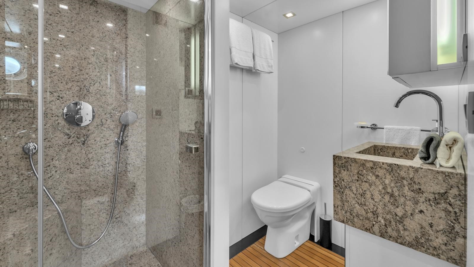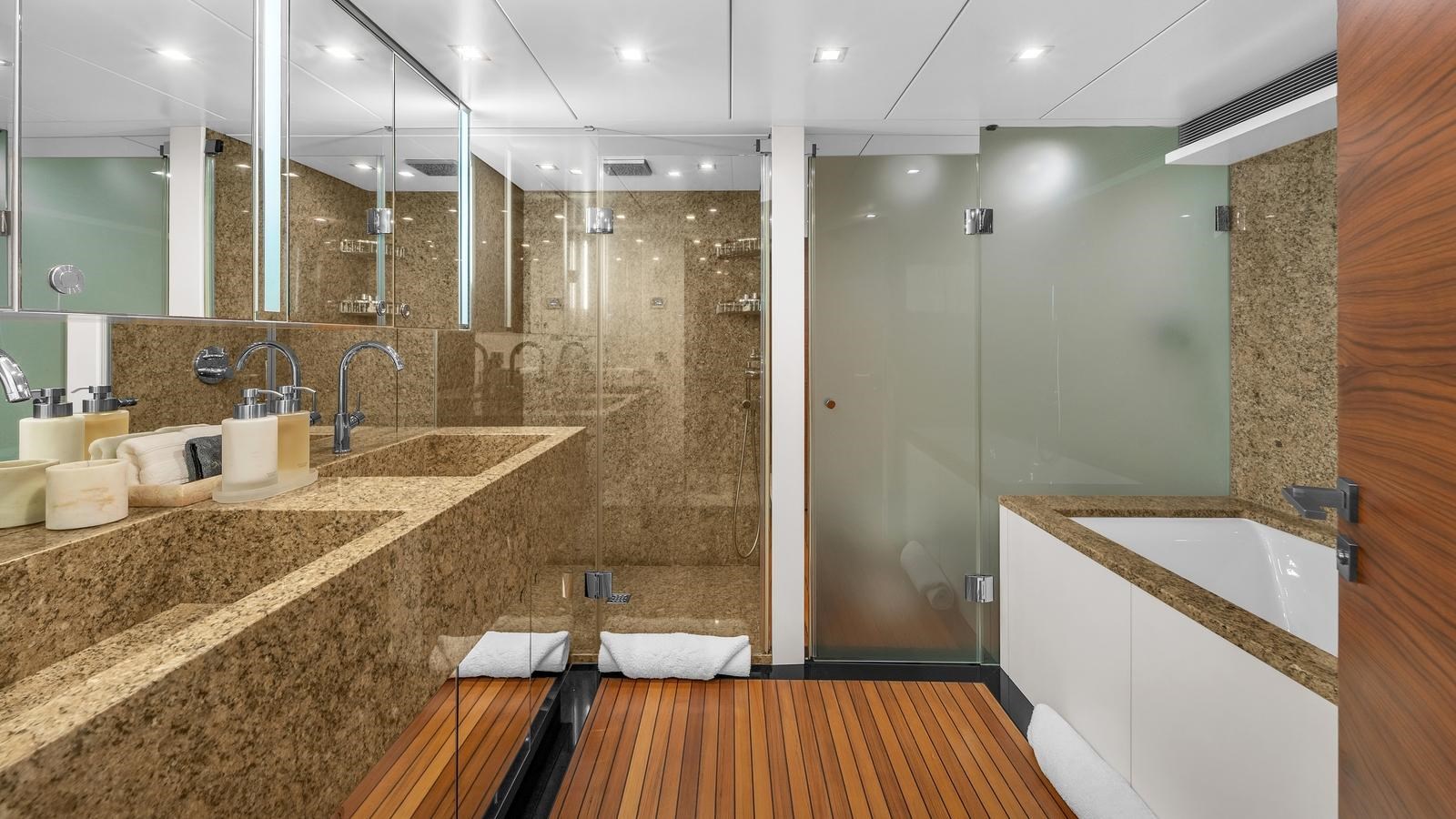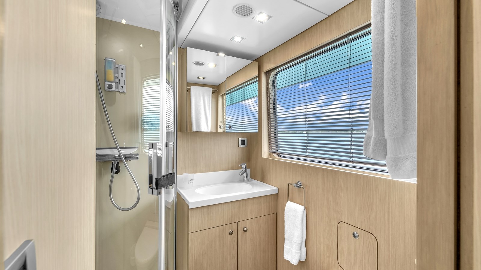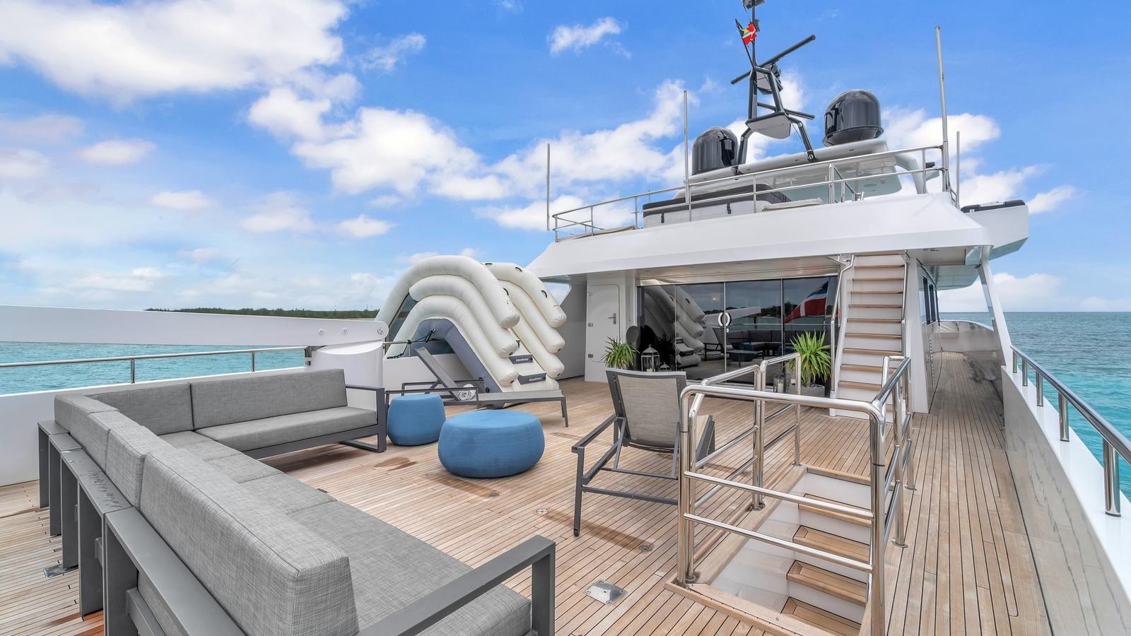 A fantastic Bahamas cruiser with low fuel consumption, she combines contemporary interior design, excellent exterior entertaining spaces, and multiple recent upgrades. Her spacious sundeck with jacuzzi and bar is perfect for relaxing or hosting, while her five-cabin layout accommodates up to 12 guests in comfort.