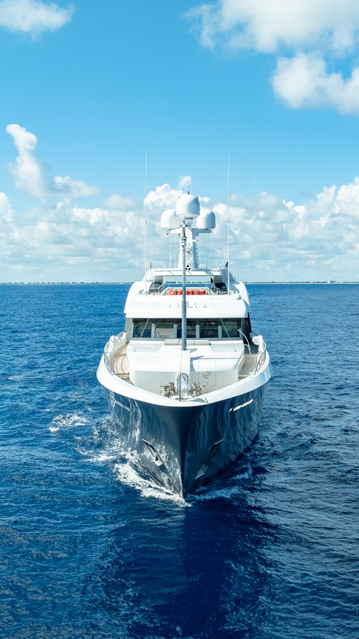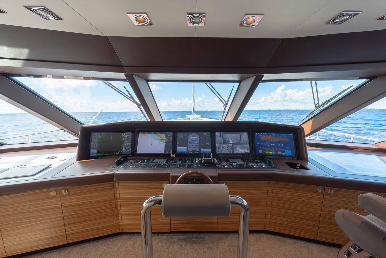 Designed by Bannenberg & Rowell, the elegant interior offers large space throughout and includes a main salon, skylounge, and bridge deck with retractable doors for seamless indoor-outdoor dining. W accommodates up to 12 guests in five luxurious staterooms, including a master suite with a private balcony, two VIP staterooms with king beds, two convertible twin staterooms, and a bridge deck converted sleeping area with a queen Murphy bed.