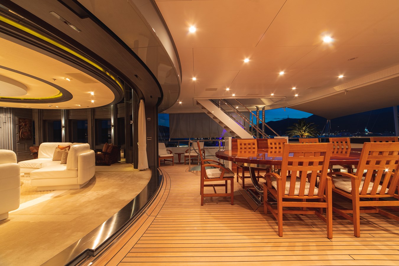 - Top deck Jacuzzi and massive deck areas for seating, dining and lounging.