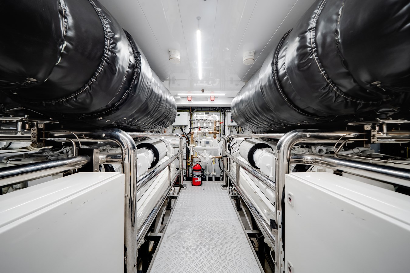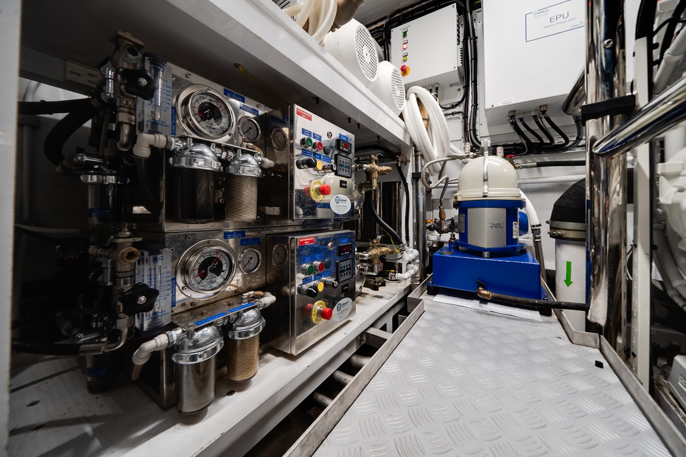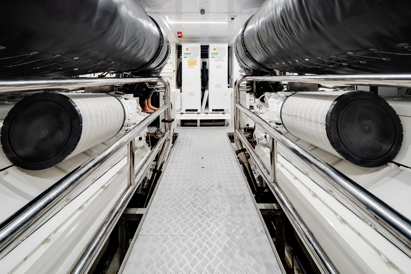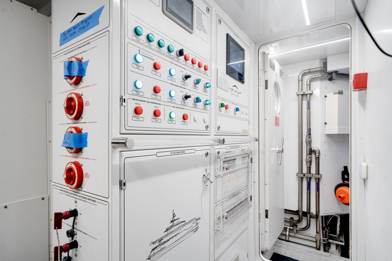Powered by upgraded twin 2,400 HP engines with SCR technology, she delivers impressive performance complemented by upgraded 2 sqm fin stabilizers for outstanding comfort underway and at anchor. RINA Pleasure Class certification, upgraded 80kW generators with automatic parallel capability, ASEA frequency converter, Alfa Laval systems, and enhanced insulation throughout reflect her robust technical specification.