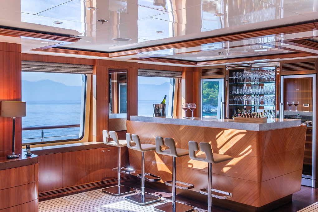 Her interior features design by H2 Yacht Design. She has many social spaces and offers a fully-equipped gym and action-packed water toy inventory. Accommodation includes a large full beam Master, VIP suite, 2 doubles and 2 twins. Both the Master and VIP Staterooms are in prime position on the Main deck.