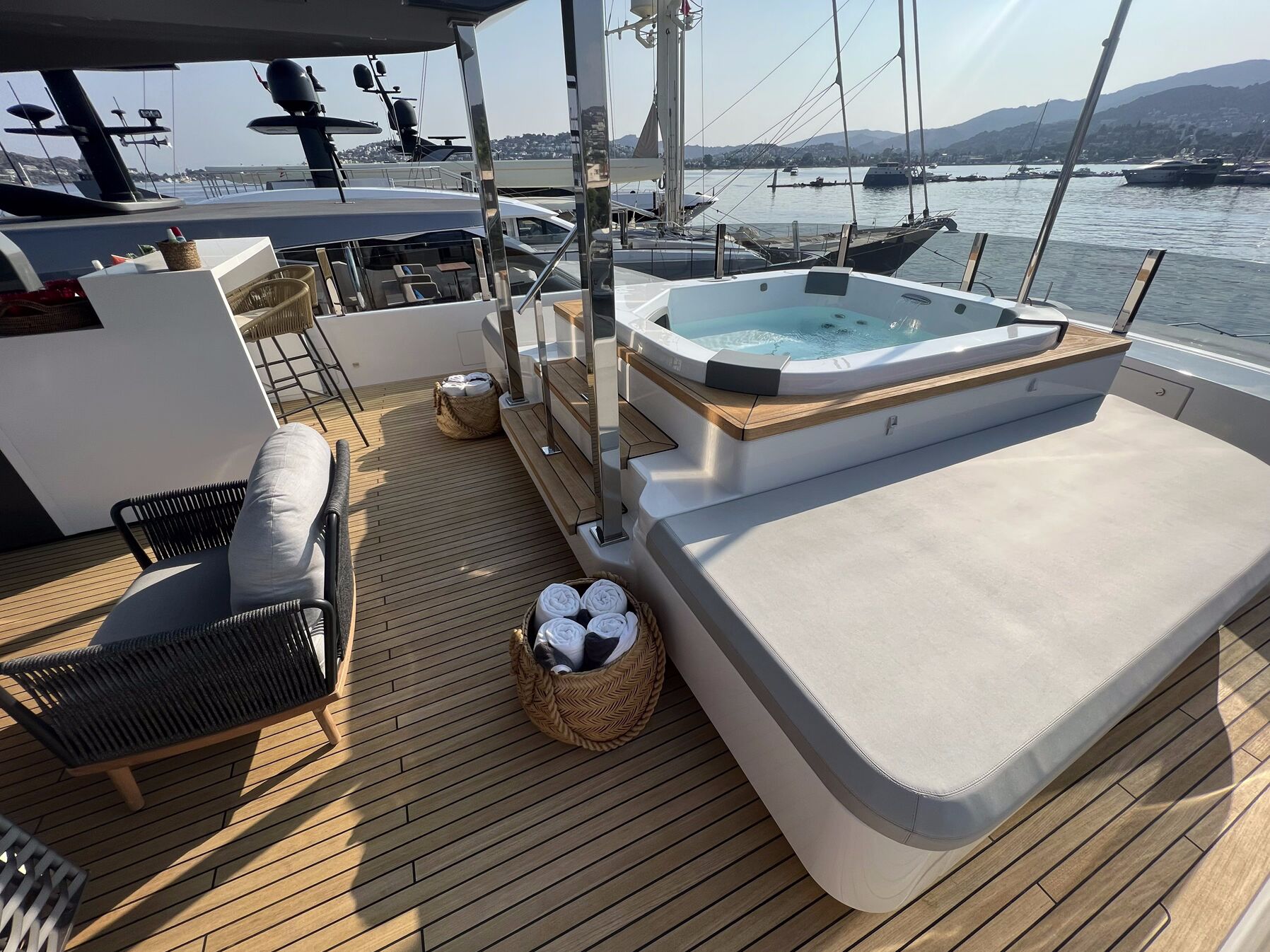 Accommodating up to 10 guests in five beautifully appointed staterooms, including a full-beam Owner’s suite on the main deck, NOMAD provides an elegant and comfortable onboard experience. Guests can enjoy multiple deck spaces for sunbathing and socialising, a sun deck with jacuzzi, and a beach club perfect for waterside relaxation and watersports. With her experienced crew and impressive range, NOMAD is an excellent choice for exploring the Mediterranean in style and comfort.