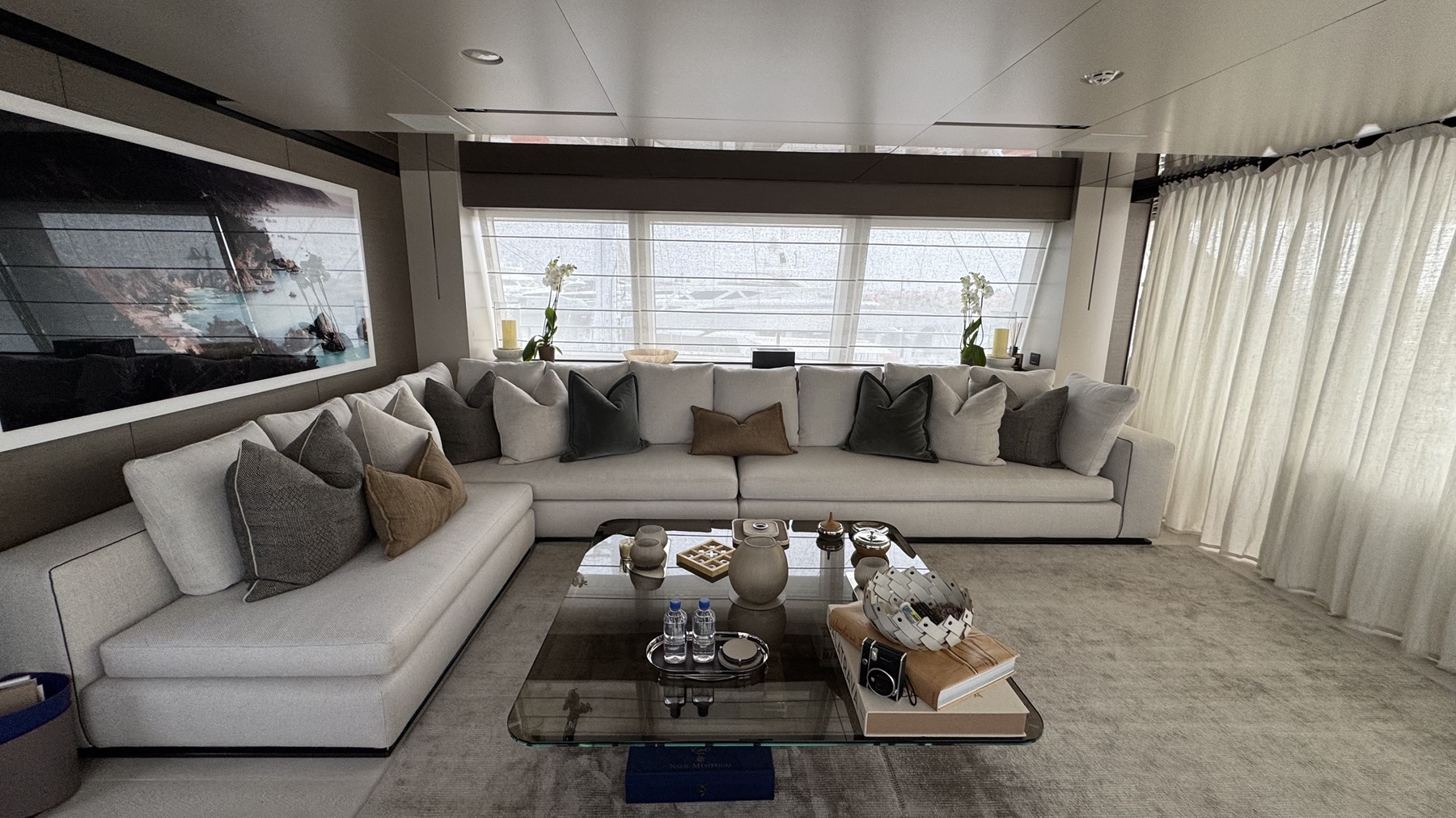 Key Features: Sun deck jacuzzi, spacious outdoor lounges, beach club with tender garage, stabilisers for comfort at anchor and underway
