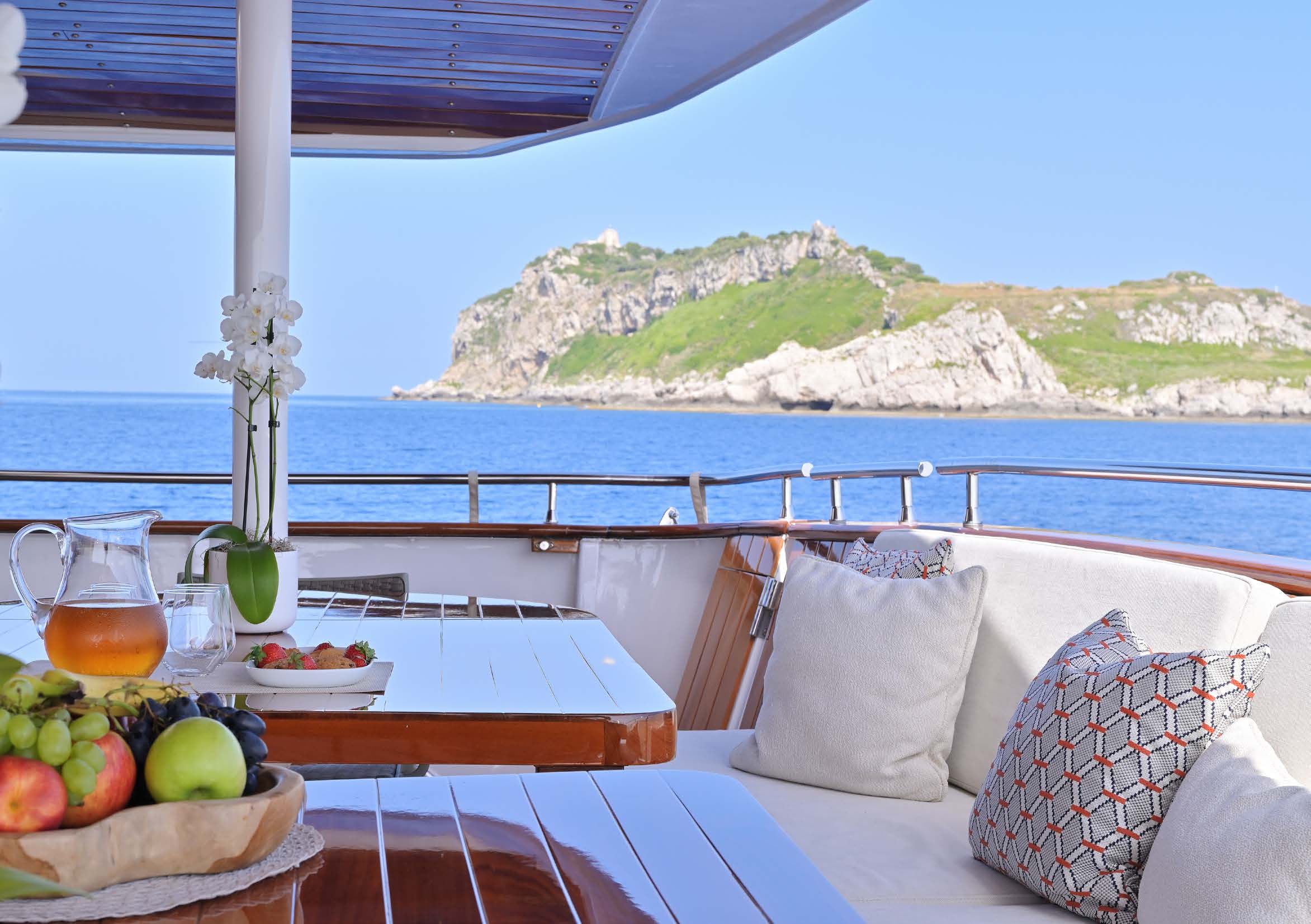A true gentleman’s yacht, SHAHA combines timeless design by André Mauric with impressive volume for her size, thanks to her generous 8.23m beam. She accommodates up to 12 guests in 6 staterooms and offers expansive exterior living spaces, including a large, uncluttered sun deck designed for relaxation and entertaining.