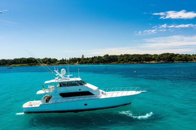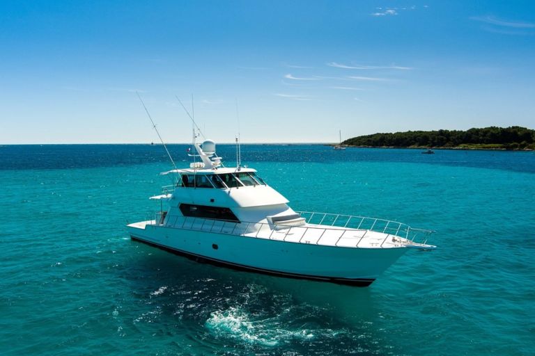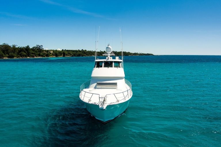 The 26.21m (86′) sportfisher yacht SPHEREFISH for sale accommodates 8 guests in 4 staterooms. Delivered in 2001 and refitted in 2020, M/Y SPHEREFISH built by Hatteras, became one of the very few 86 Hatteras Convertibles ever built.