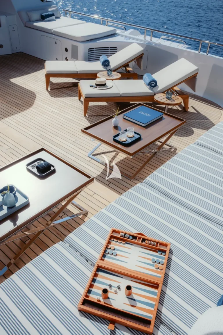 ADVENTURE redefines luxury on the water with expansive decks, vast living spaces, and a brand-new, meticulously designed interior. Every element—furnishings, linens, artwork, and an enviable collection of water toys—has been thoughtfully curated to deliver the ultimate yachting experience. From the latest foil boards to all the must-haves for fun on the waves, ADVENTURE is fully equipped for every kind of guest and every kind of getaway.