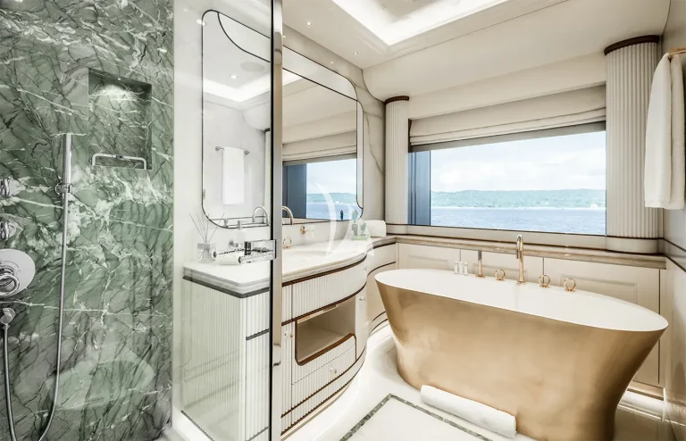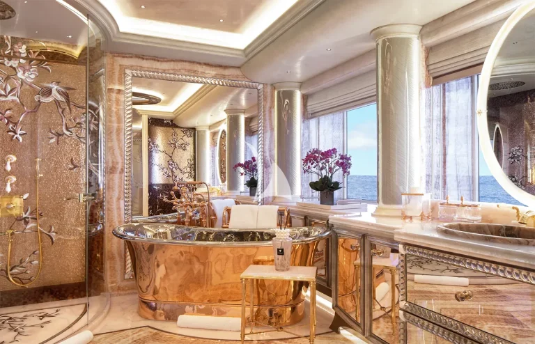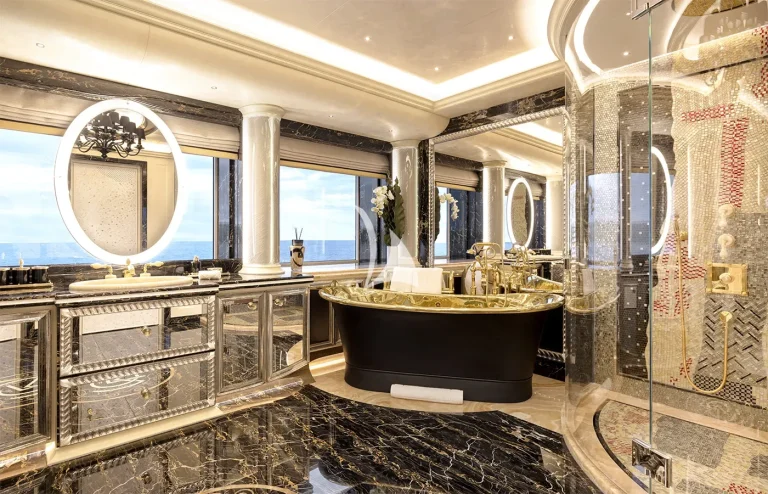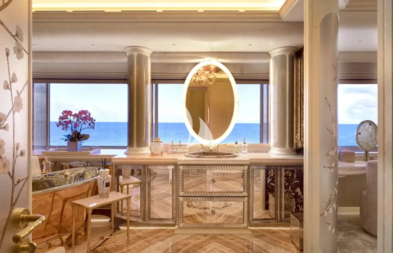Notable amenities include a two-story Owner’s apartment, an enormous beach club, Hammam, plunge pool, sauna, massage room, and beauty salon.