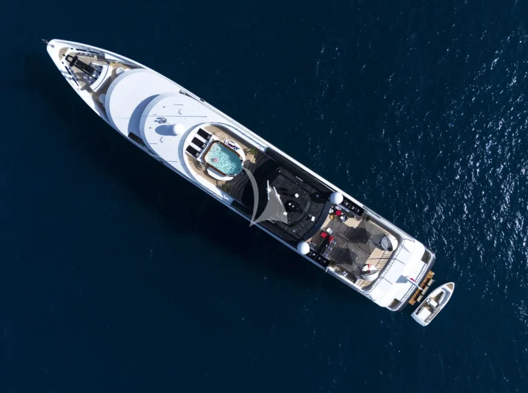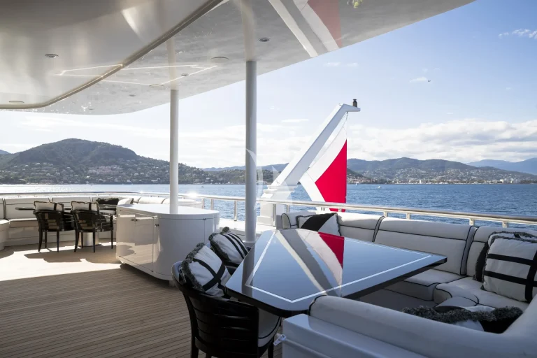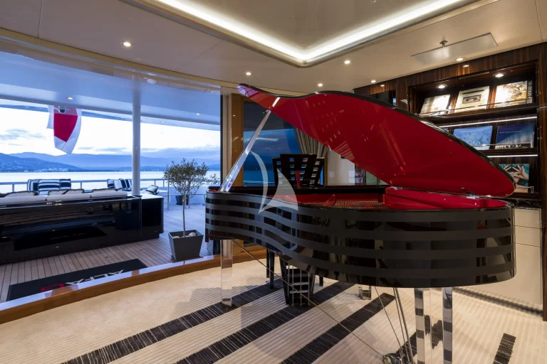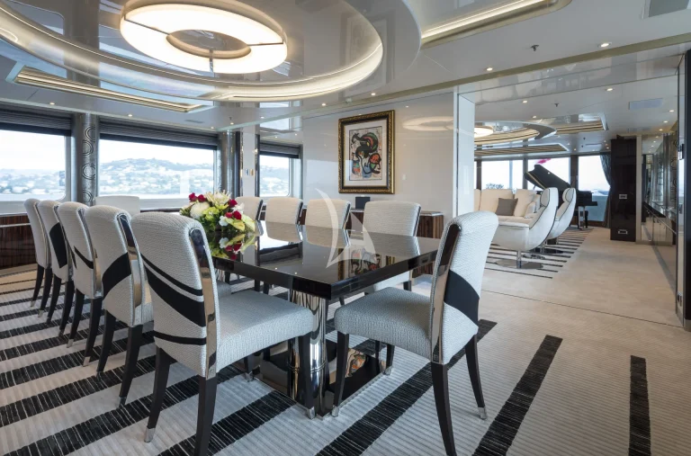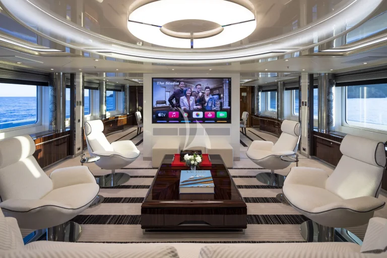 The sun deck also boasts a stunning swimming pool with a contra-current training system, surrounded by a spacious sun lounging area. Inside, the yacht exudes glamour with luxurious fabrics, custom furnishings, and authentic art, creating an atmosphere of unmatched comfort. Alfa G now exemplifies modern luxury yachting with its sleek design, cutting-edge technology, and exquisite craftsmanship.
