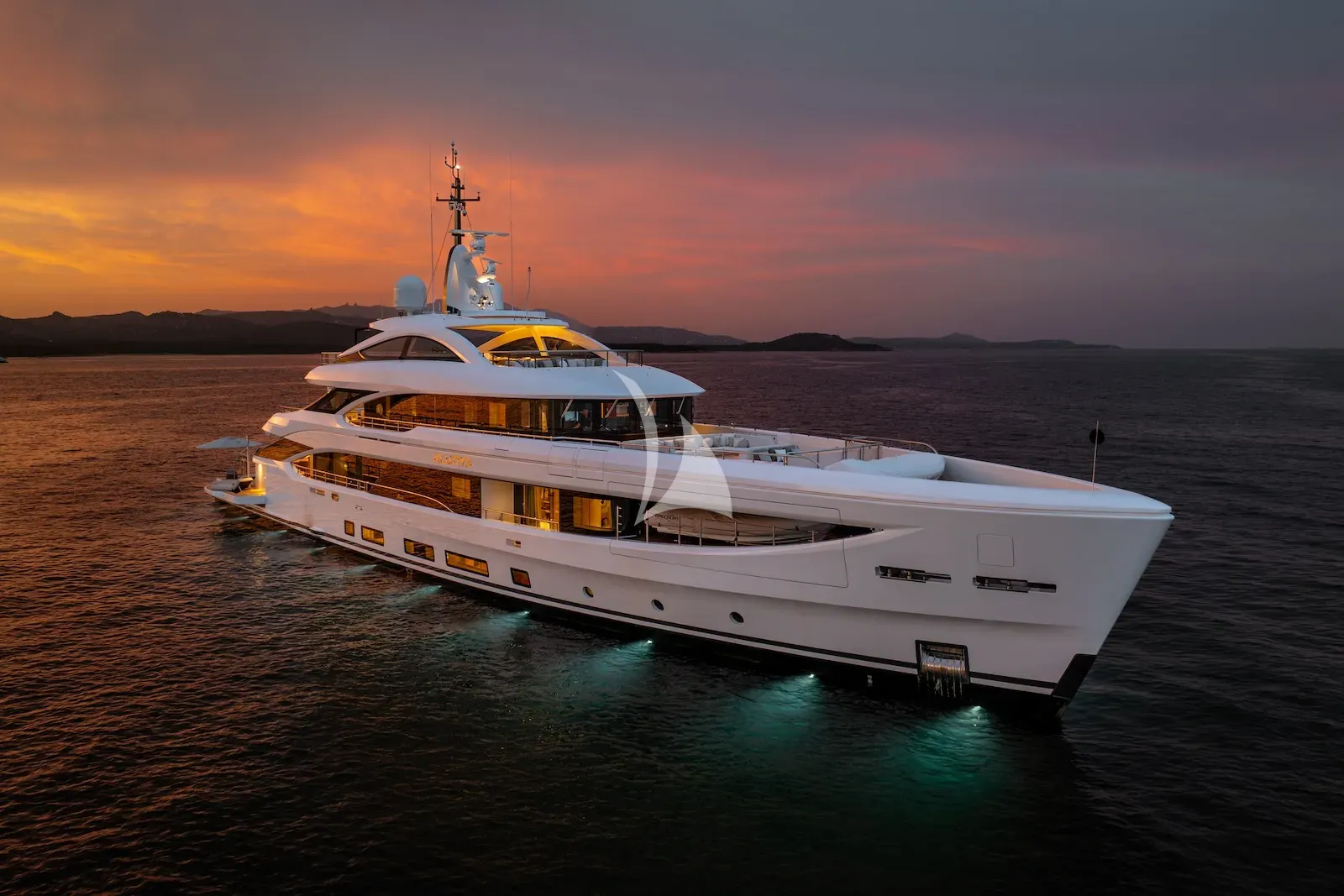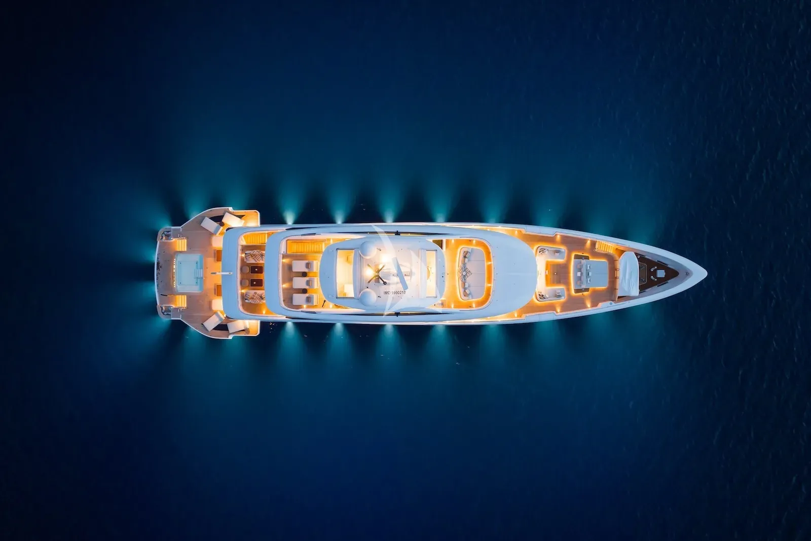 Accommodating up to 10 guests across five suites, there is a spacious owner’s suite on the main deck, complete with a study area, large ensuite, and a private terrace. The remaining guest staterooms are situated on the lower deck, designed for comfort and privacy. The yacht also features six additional cabins for an 11-person crew, to look after guests.