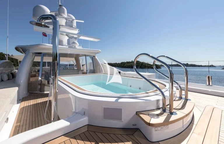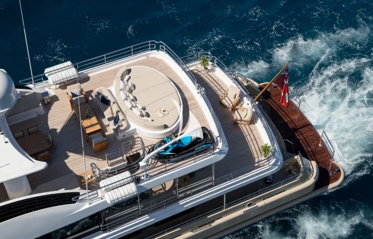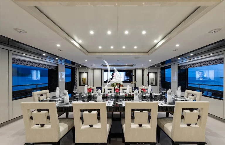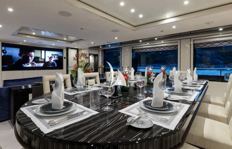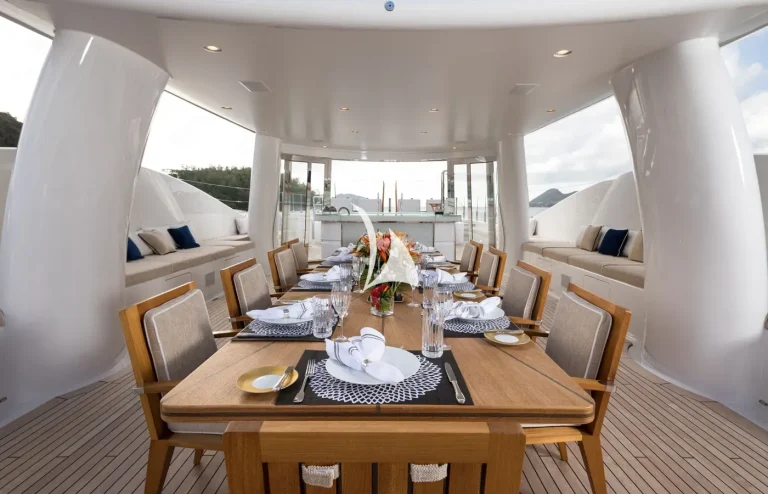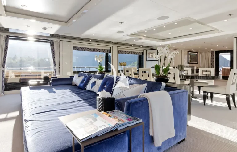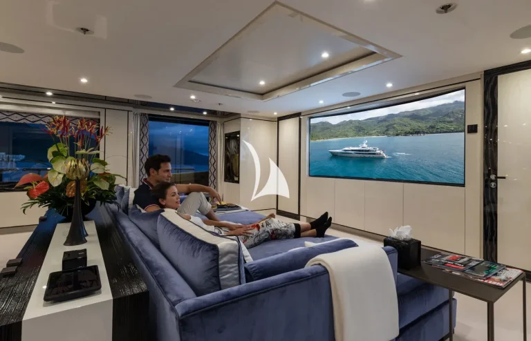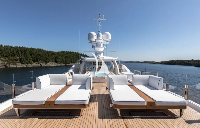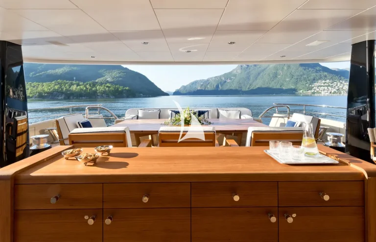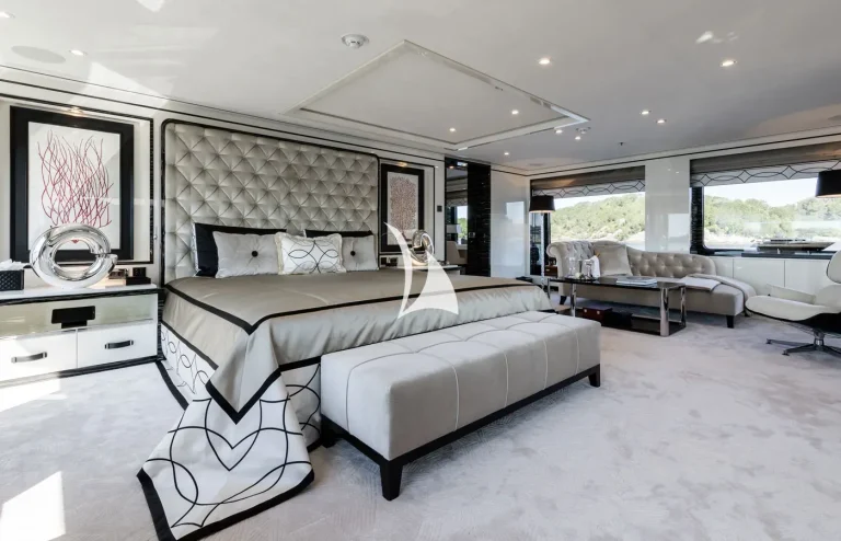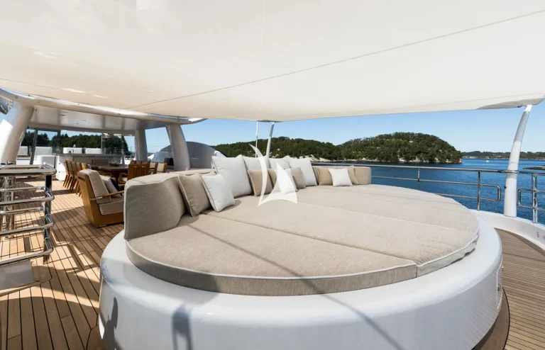 Her interiors are beautified by the tasteful decoration skills of Laura Sessa, with an intelligent layout to provide the ultimate in luxury. The Main Deck salon and dining area, including a 10-person dining table, 105” curved Samsung TV, and sofas, are cleverly integrated into the design, making this space generous and warm. Views here are enhanced by fold-down balconies on both the port and starboard sides, creating your own private terrace with uninterrupted sea views.Continuing on Main Deck, discover the fully-equipped Gym, built to maintain your strength even while cruising. On the Lower Deck, the Beach Club is equipped with a steam room and a large selection of water toys, increasing further the opportunities to relax and have fun on board.