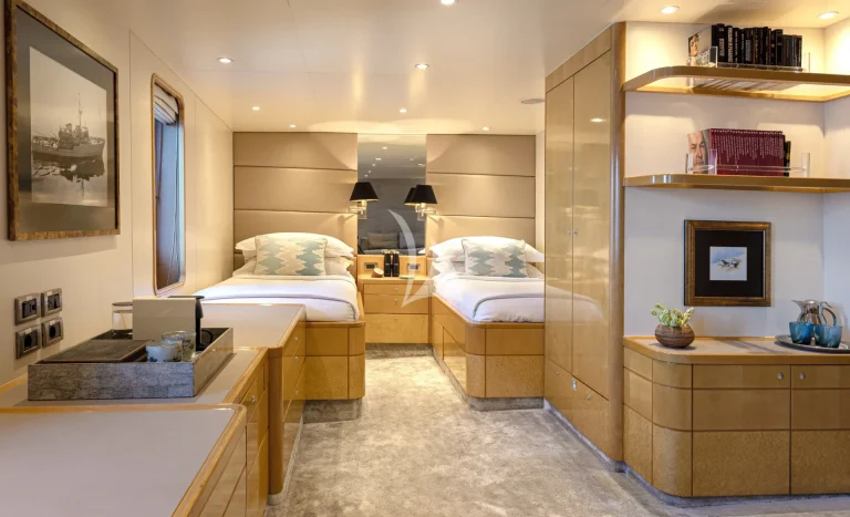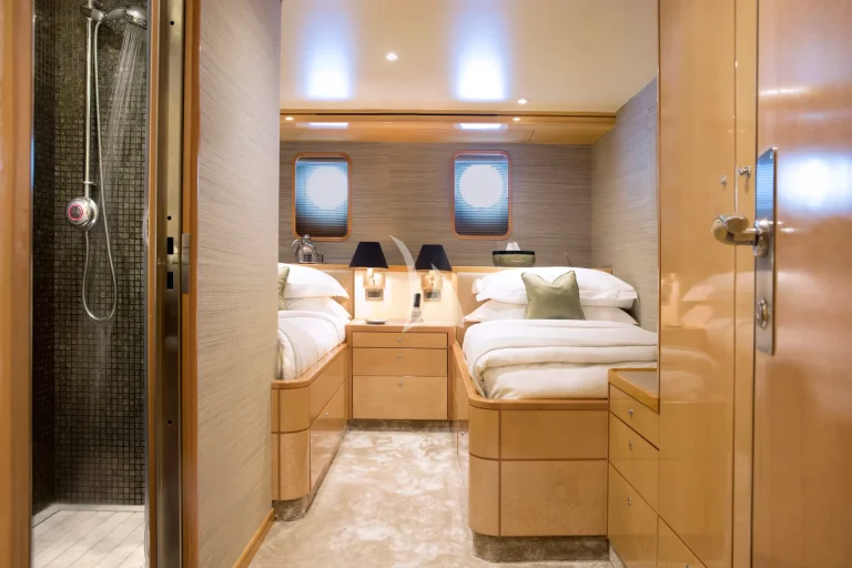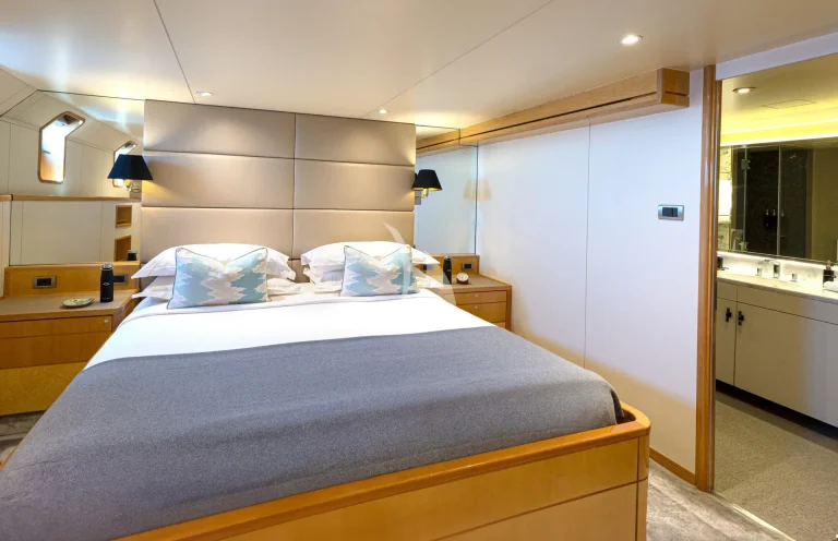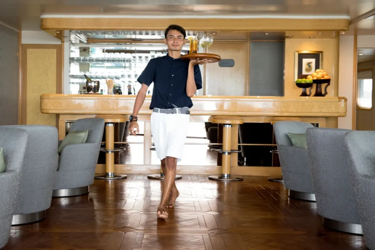Aqua Blu’s interiors bear the unmistakable signature of Cor D. Rover, the acclaimed Dutch designer behind some of the world’s most iconic superyachts. His vision brings a sense of elegance to the vessel’s light-filled spaces. Guests can sip cocktails in the sky lounge bar as the sun sets, lose track of time in the library, or settle into the cosy TV room for a relaxed evening. For those seeking even deeper relaxation, a Balinese spa offers a tranquil escape inspired by the healing traditions of the region.