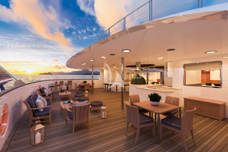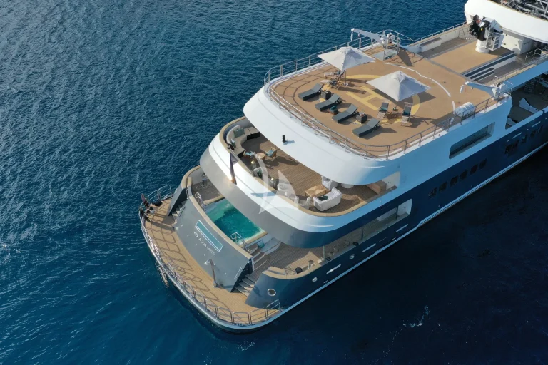 Able to accommodate up to 30 charter guests in 15 beautifully appointed suites, comprising 12 double cabins (including 3 Owner’s suites) and 3 twin cabins, with an accomplished yacht crew of 33 on hand to provide the highest levels of hospitality, Aqua Lares sets a new standard in on-the-water living. And, with onboard amenities including a cinema, exercise space, treatment room and sauna in addition to a multitude of social spaces for entertainment or relaxation, there’s no end to the enjoyment on board.