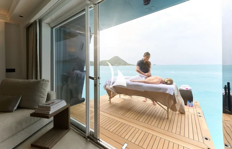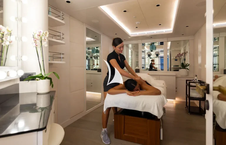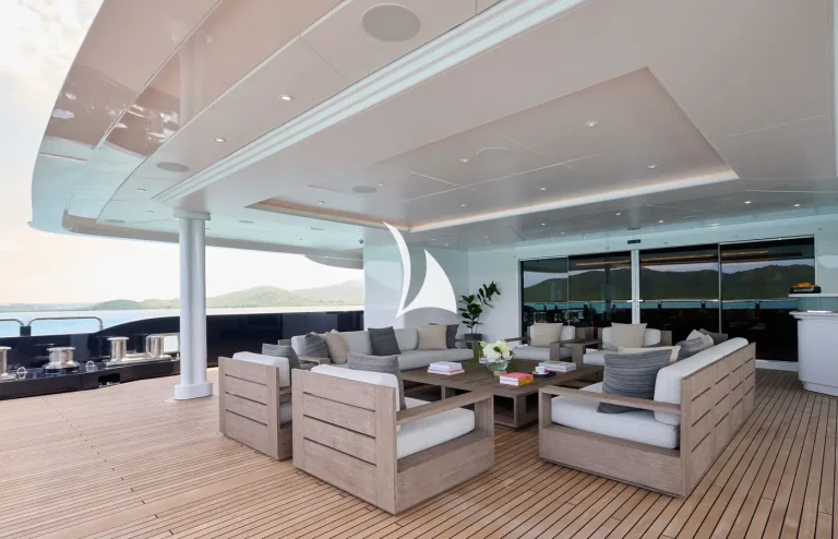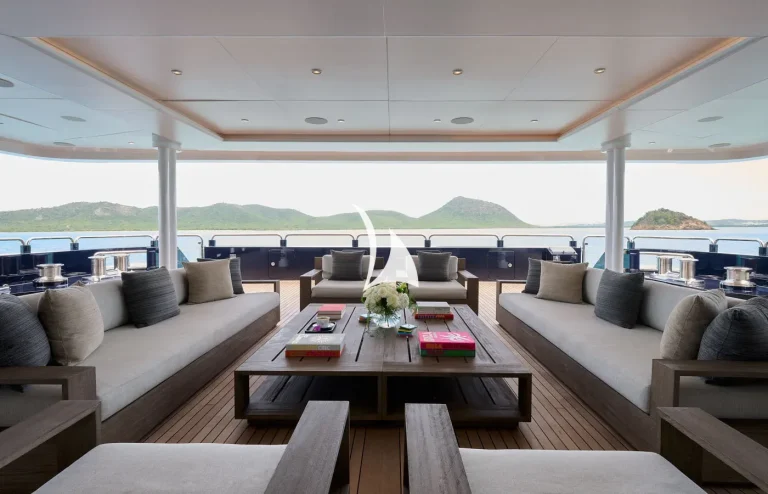 In 2023, ARBEMA completed an extensive refit, which included a full paint job, technical upgrades, and major interior refit by Rhodes Young. She has also benefited from brand new glass railings on her exterior decks, exuding a refined and contemporary aesthetic. Furthermore, her impressive beach club has been upgraded, providing an exquisite sun-soaked retreat for guests seeking relaxation.