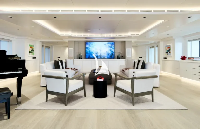 Built with entertaining in mind, her grand main salon is a huge area that sets the scene for this elegant and opulent yacht. And, with a piano and a generous lounge area, it is perfect for hosting welcome drinks on board.